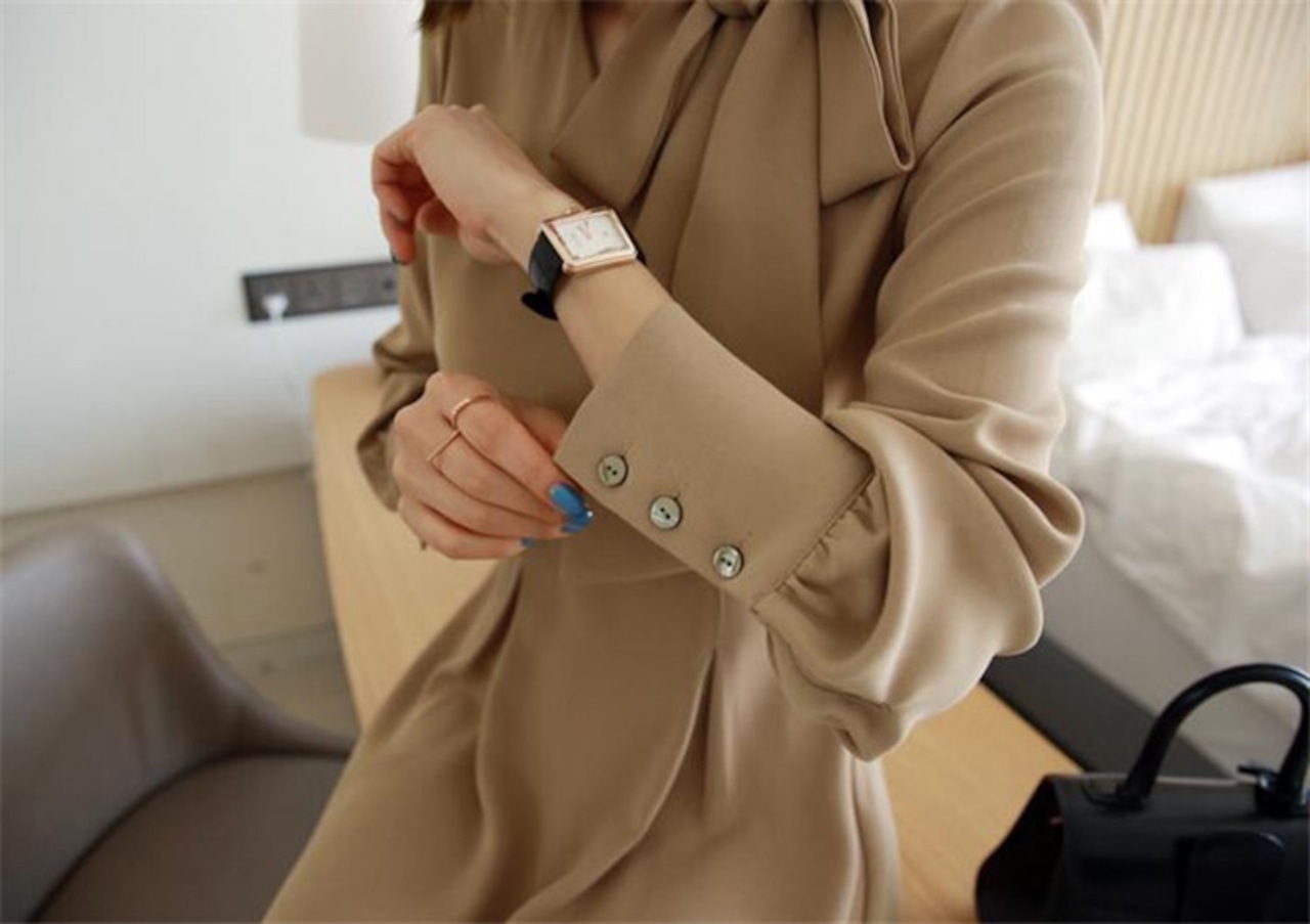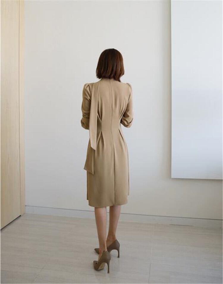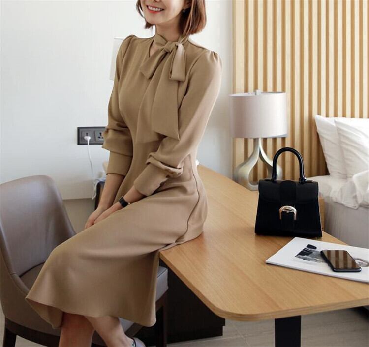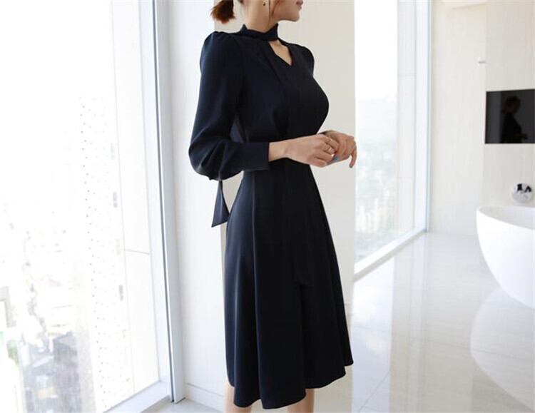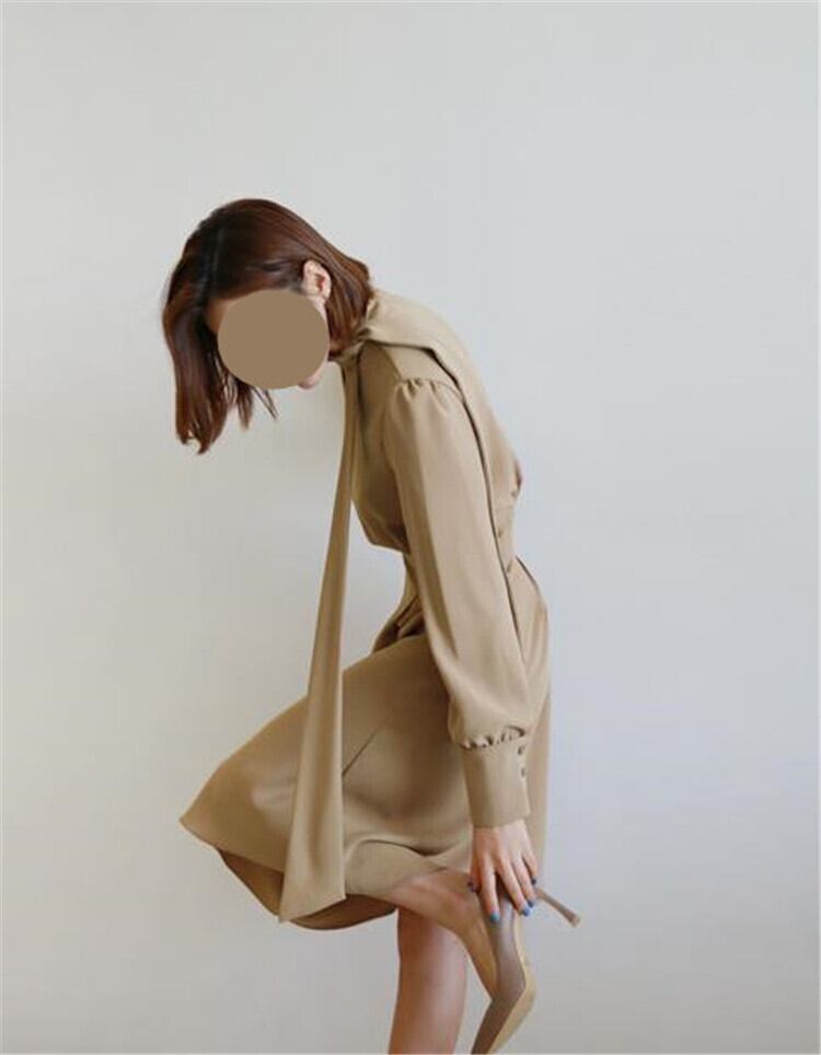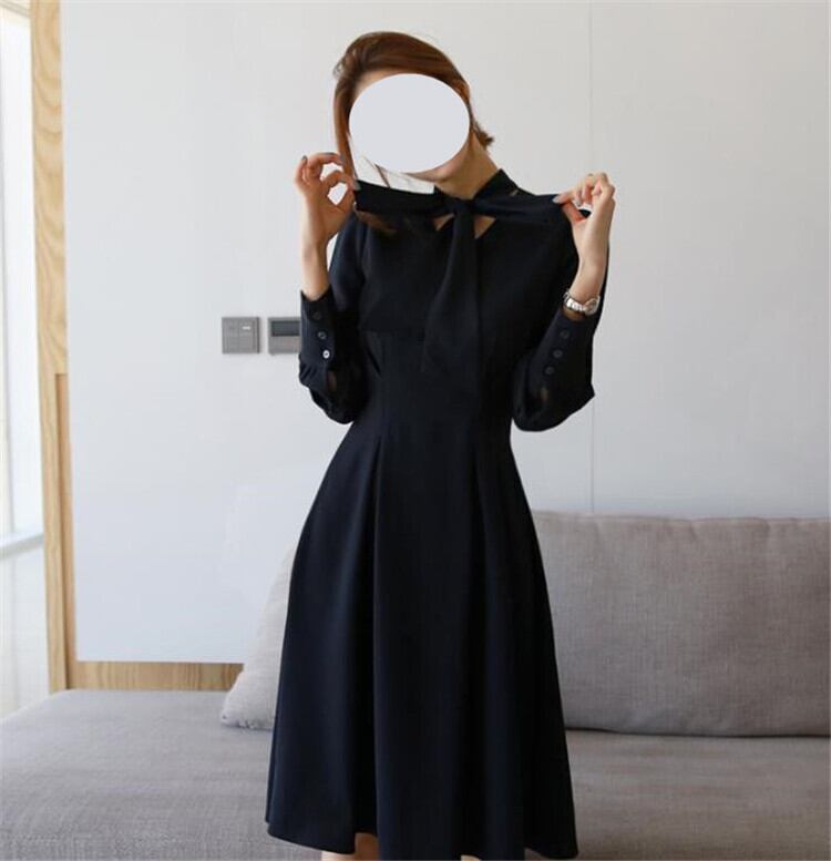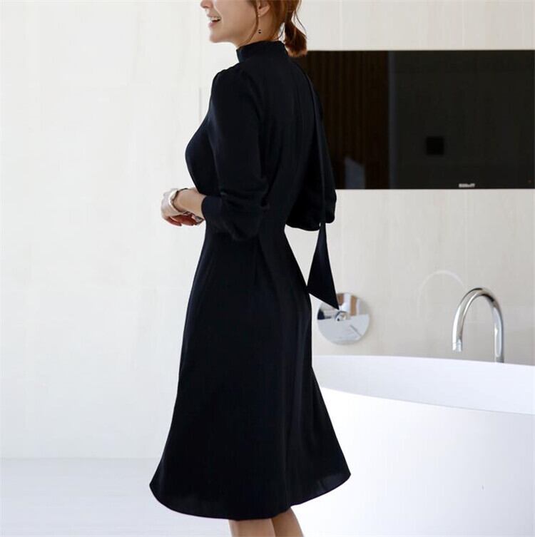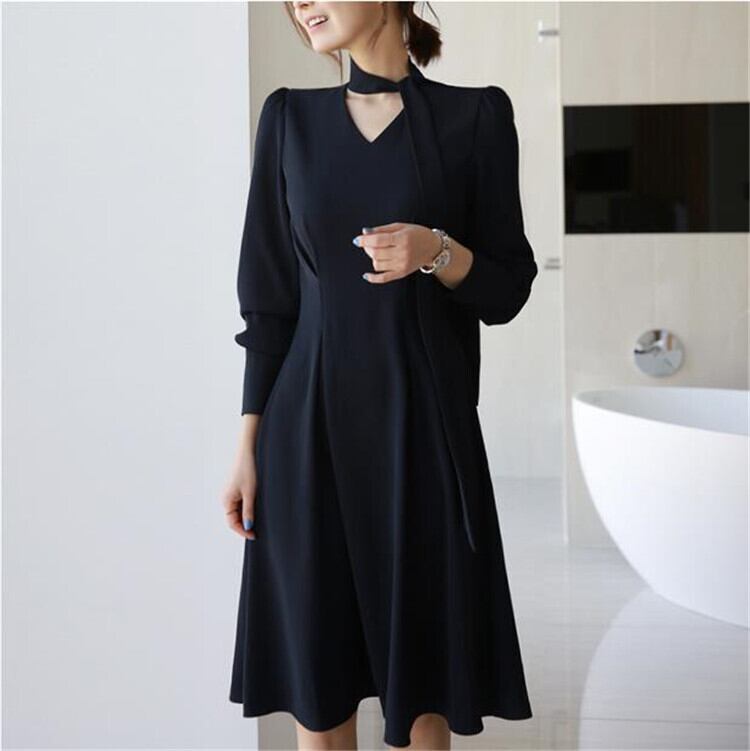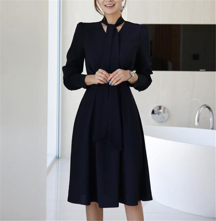 フレンチ レディース ロングスカート長袖 蝶結び Aライン
