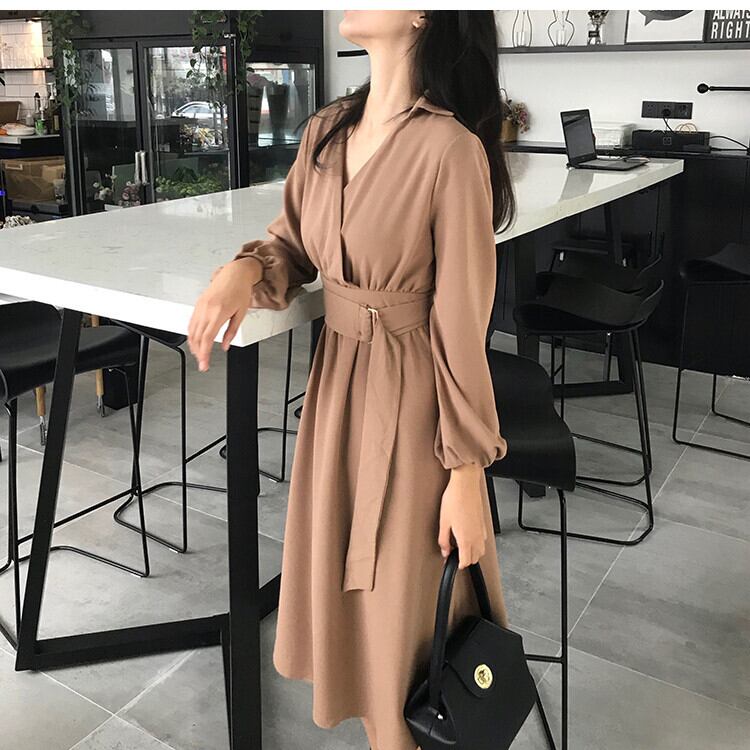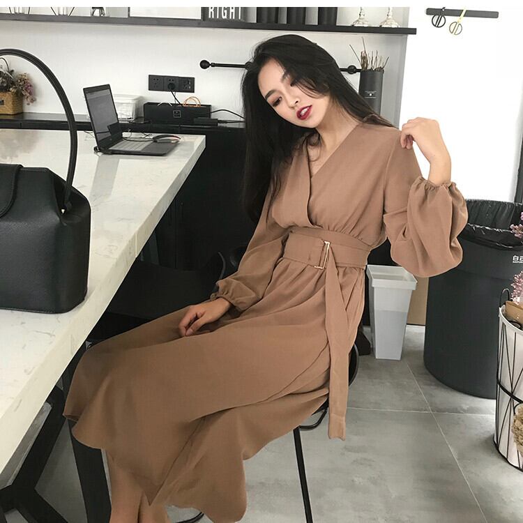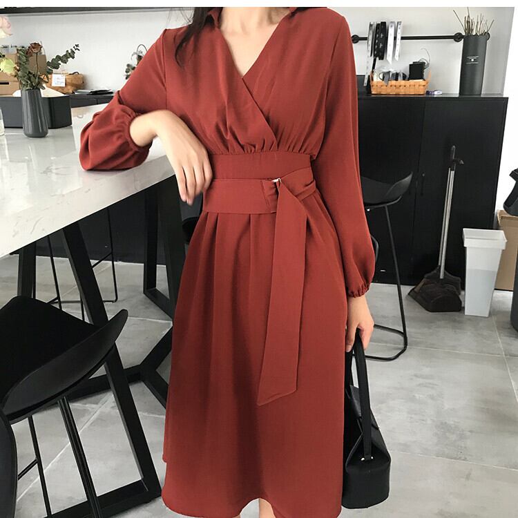 トレンド感溢れるVネックワンピースロングスカート!ピュアカラーで気質を上品に演出するAラインシルエットのハイウエストデザインです。流行のトレンドを取り入れながらも、大人の女性にふさわしい上品さを兼ね備えています。