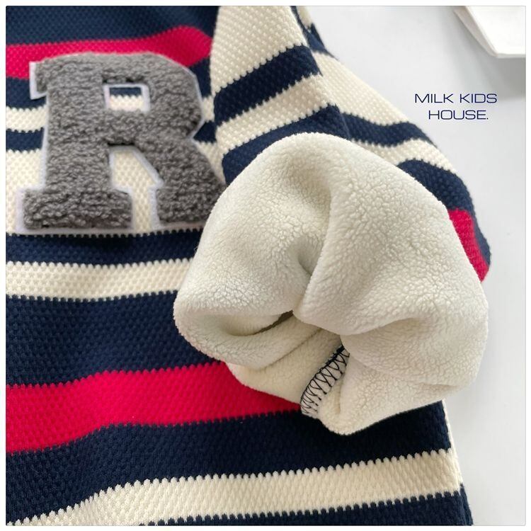 新しいスタイルの冬の男の子用トップスが入荷しました!タオル刺繍入りのレターストライプワンピースベルベットは、可愛らしいデザインでおしゃれな一枚です。暖かくて肌触りの良いベルベット生地を使用しており、お子様の肌をやさしく包み込みます。寒い冬でも快適に過ごせるように、防寒性も抜群です。さらに、クリスマスパーティーなどの特別な場面でも活躍すること間違いなしです。タオル刺繍がポイントとなっており、お洒落感を演出します。お子様のお洋服にぜひ取り入れてみてください!