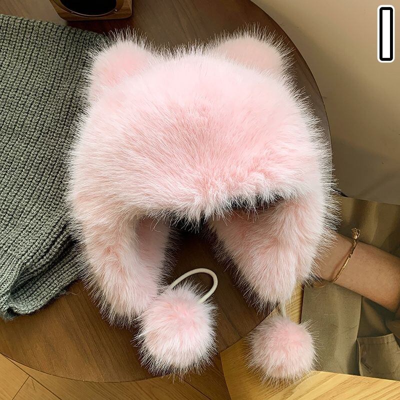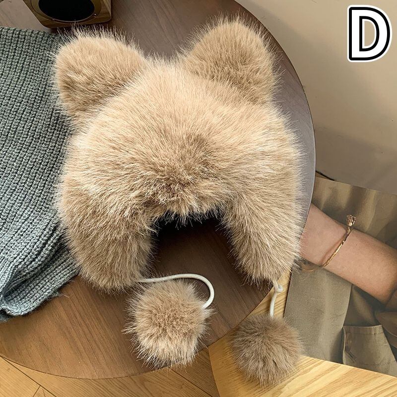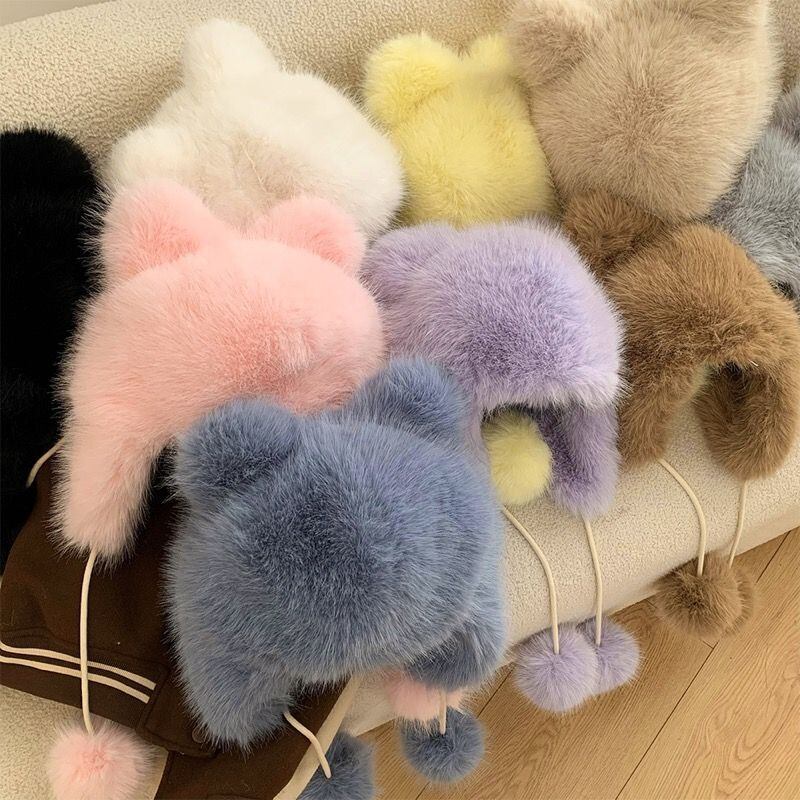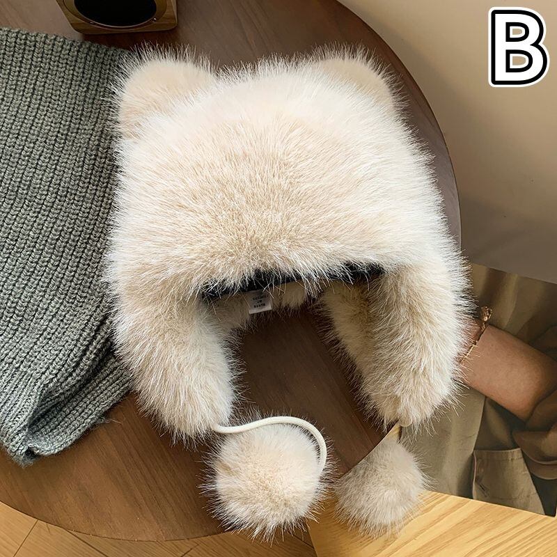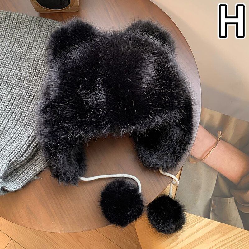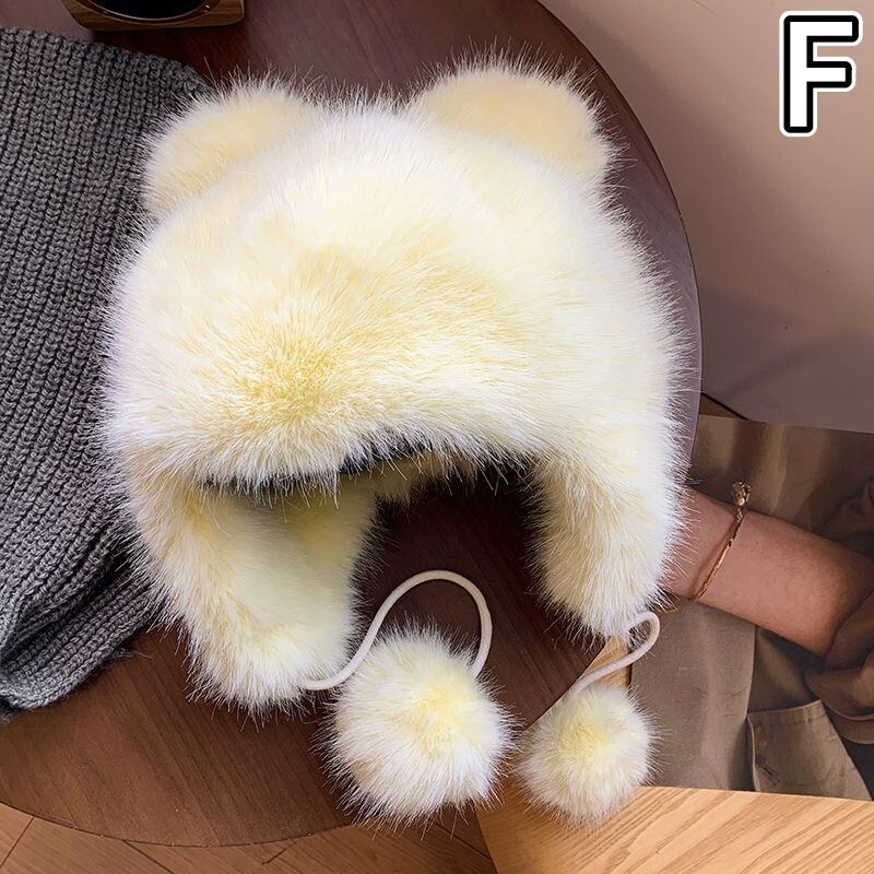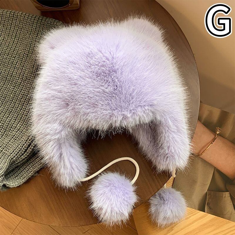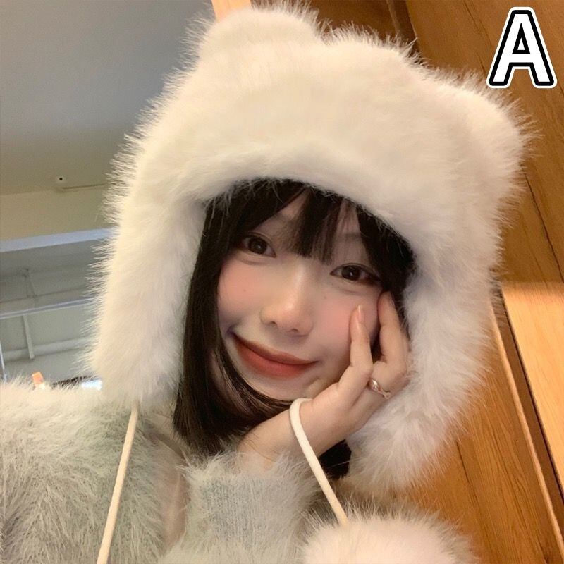 帽子 起毛 フェイクファー ボア 熊耳 ニット レディース