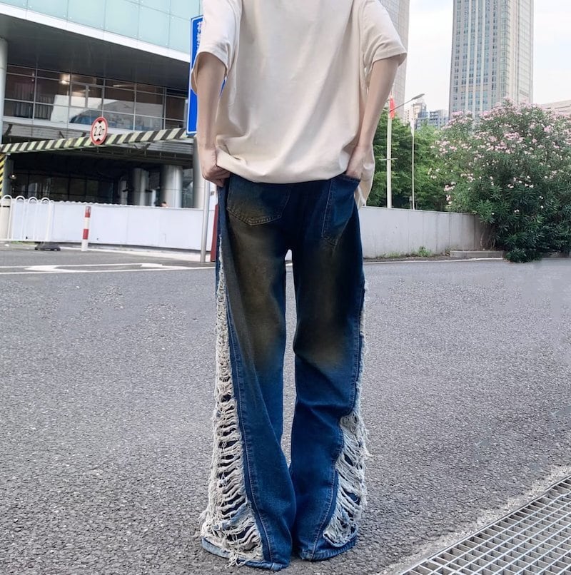 デニム ジーンズ ジーパン ダメージ加工 メンズ