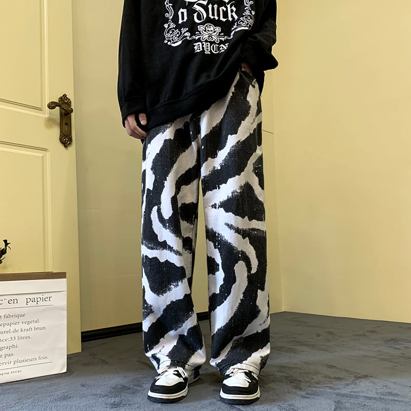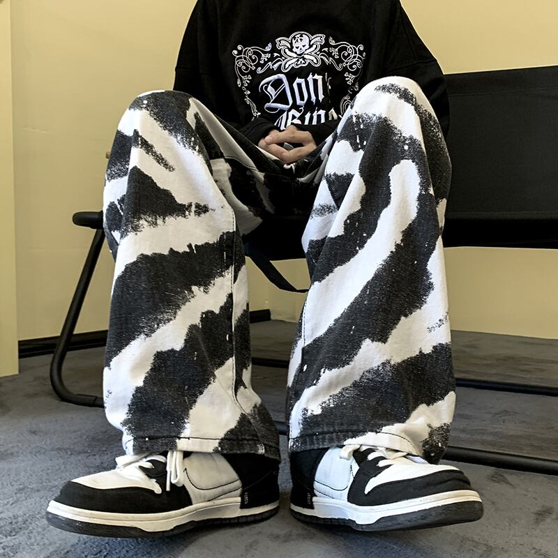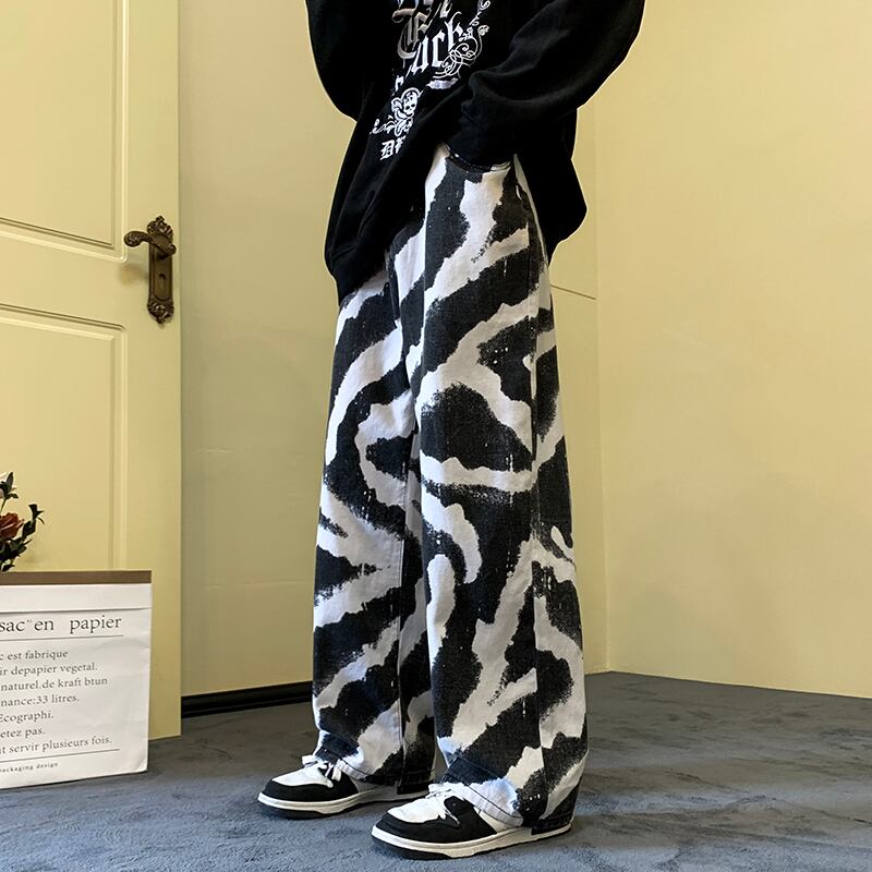 デニム ジーンズ ズボン プリント ストレート メンズ