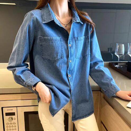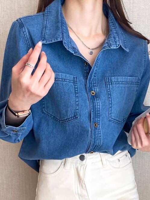 綿素材でできたデニム長袖シャツ。カジュアルながらも女性らしいシルエットが魅力です。タイムレスなデニムアイテムは、季節を問わず様々なスタイリングに合わせられます。薄手の生地感で、春や秋の羽織り物としても活躍します。
