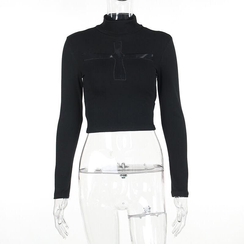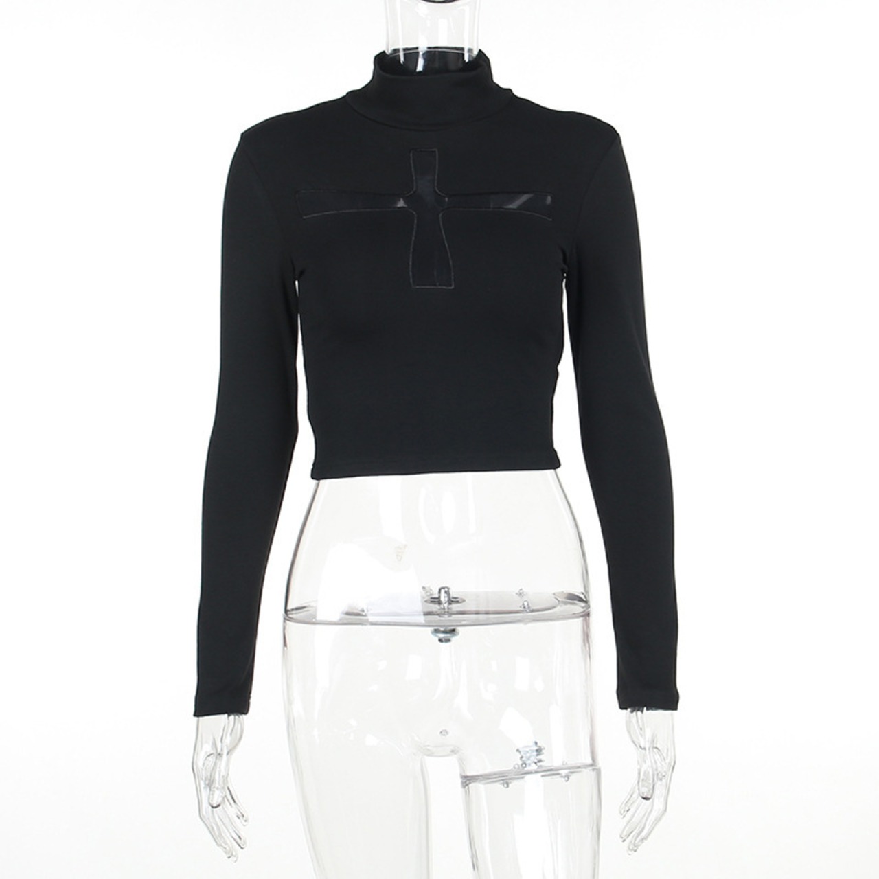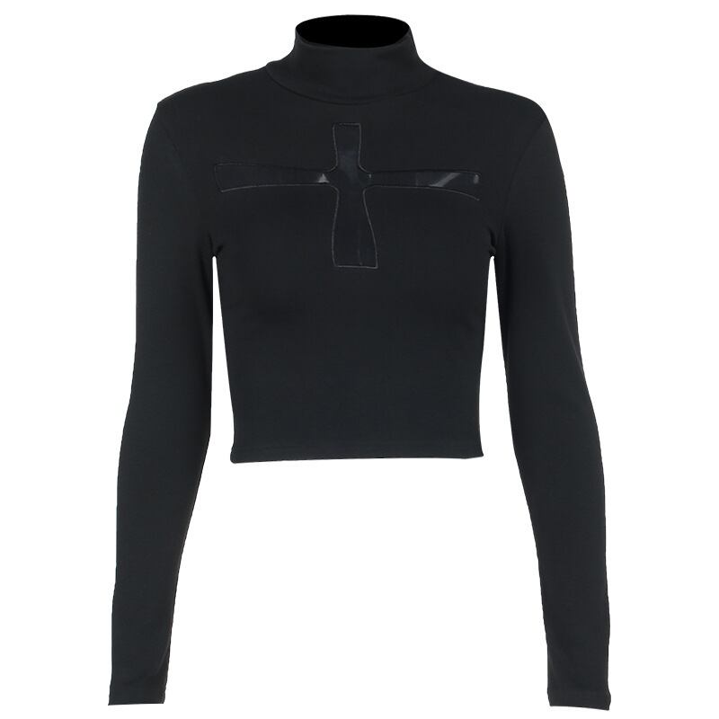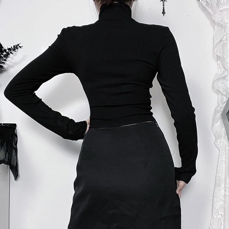 ロンT Tシャツ ハイネック ショート丈 レディース
