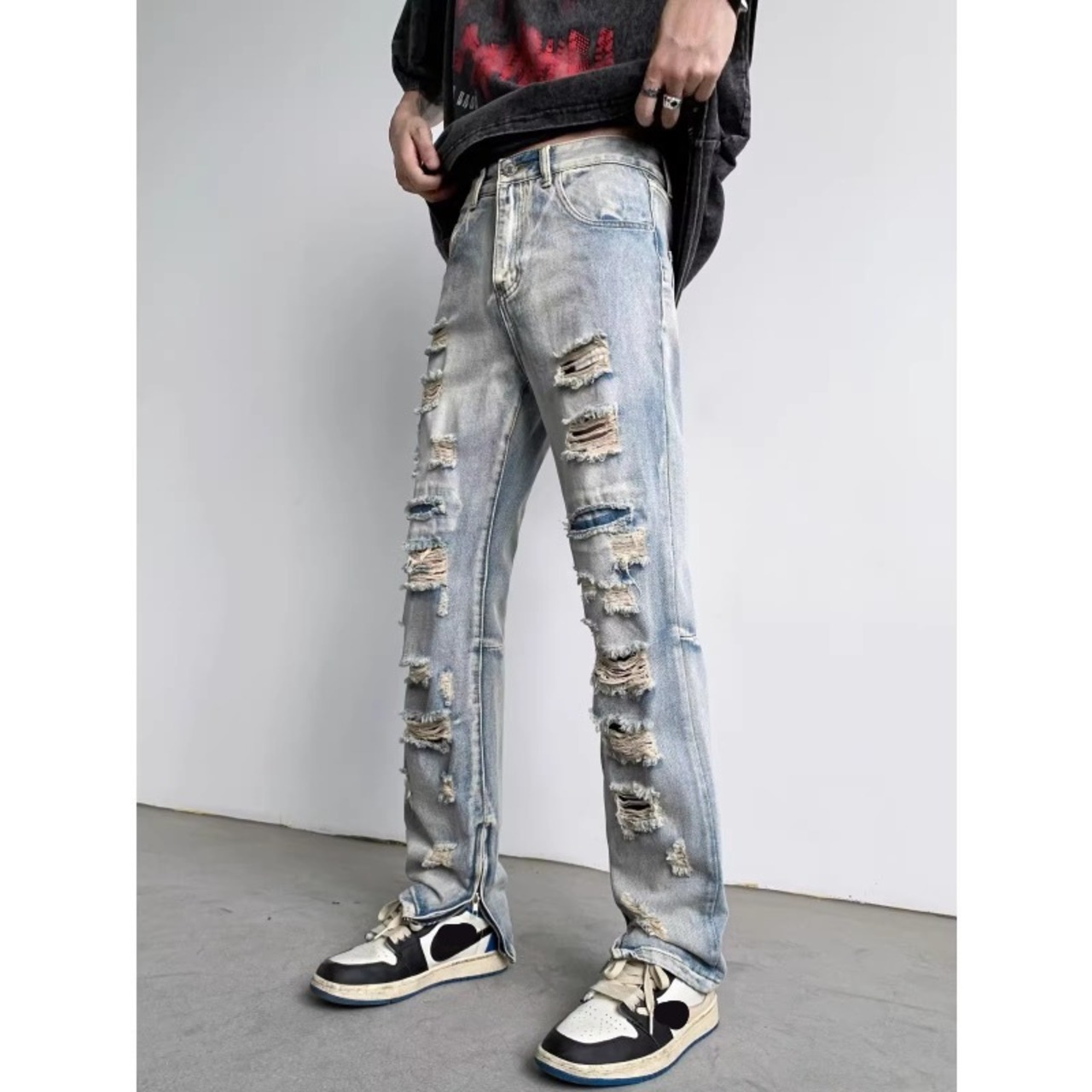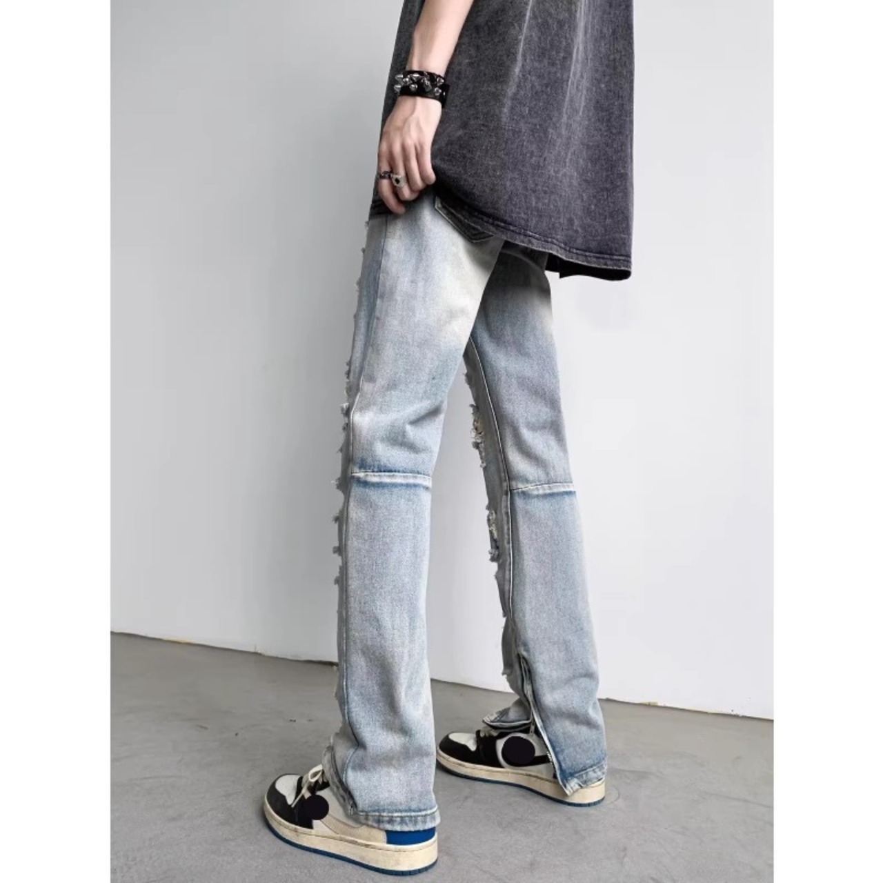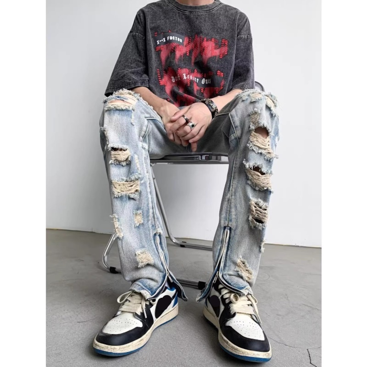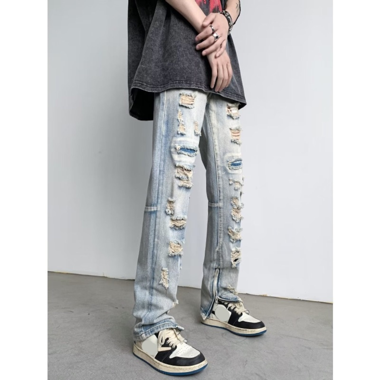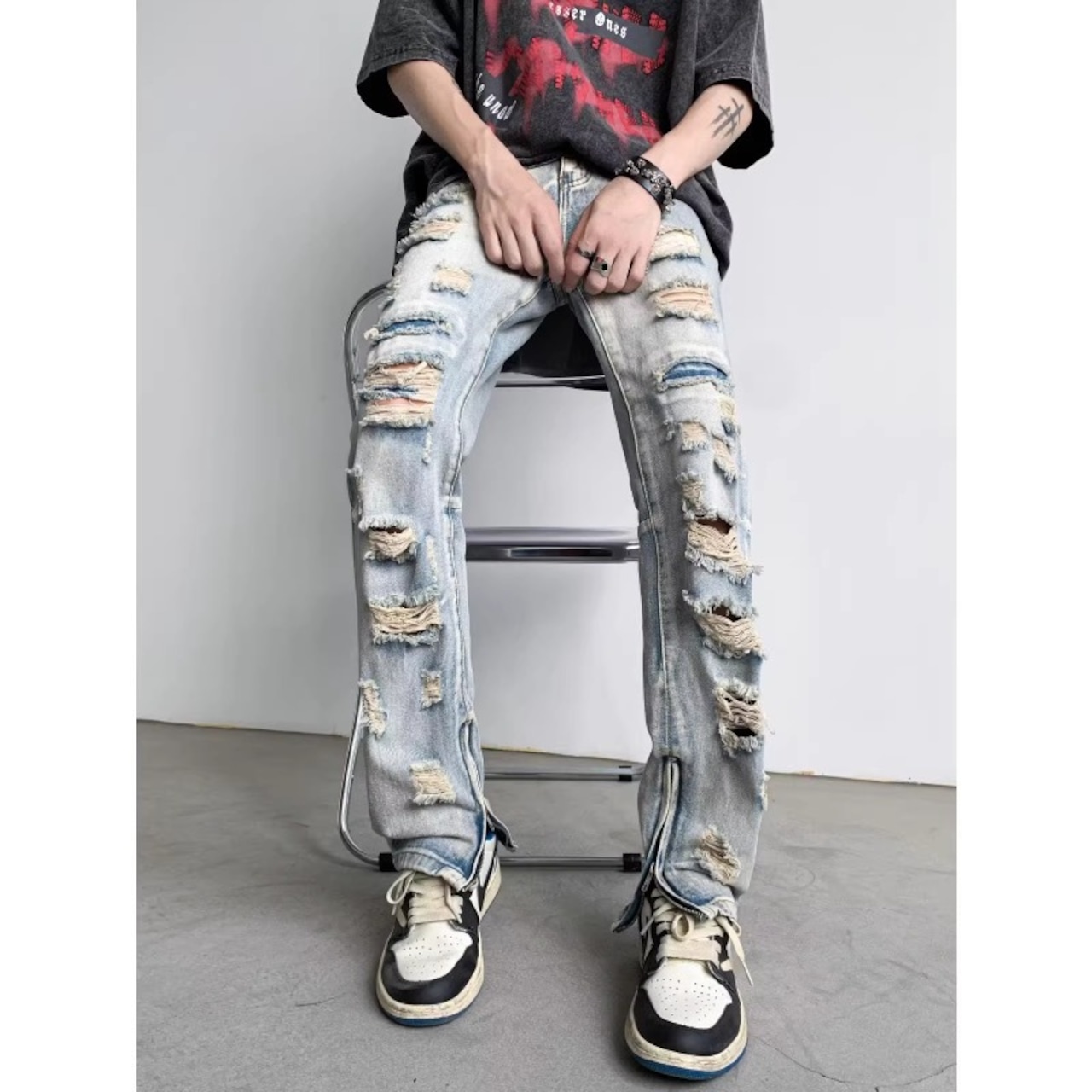 逞しい男らしさを引き立てるデニム ジーンズ ダメージ加工 サイドジップが登場しました。ダメージ加工の施された風合いが、カジュアルなスタイルに一層のアクセントを加えます。サイドジップが特徴のデザインは、スリムなシルエットを演出しながらも着脱も簡単で快適な穿き心地を実現しました。また、股上も深く設計されており、動きやすさも兼ね備えています。これまでにないデザインと機能性の両立で、あなたのスタイリングをより一層格上げすること間違いありません。
