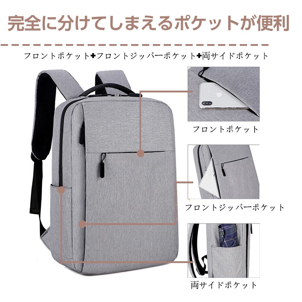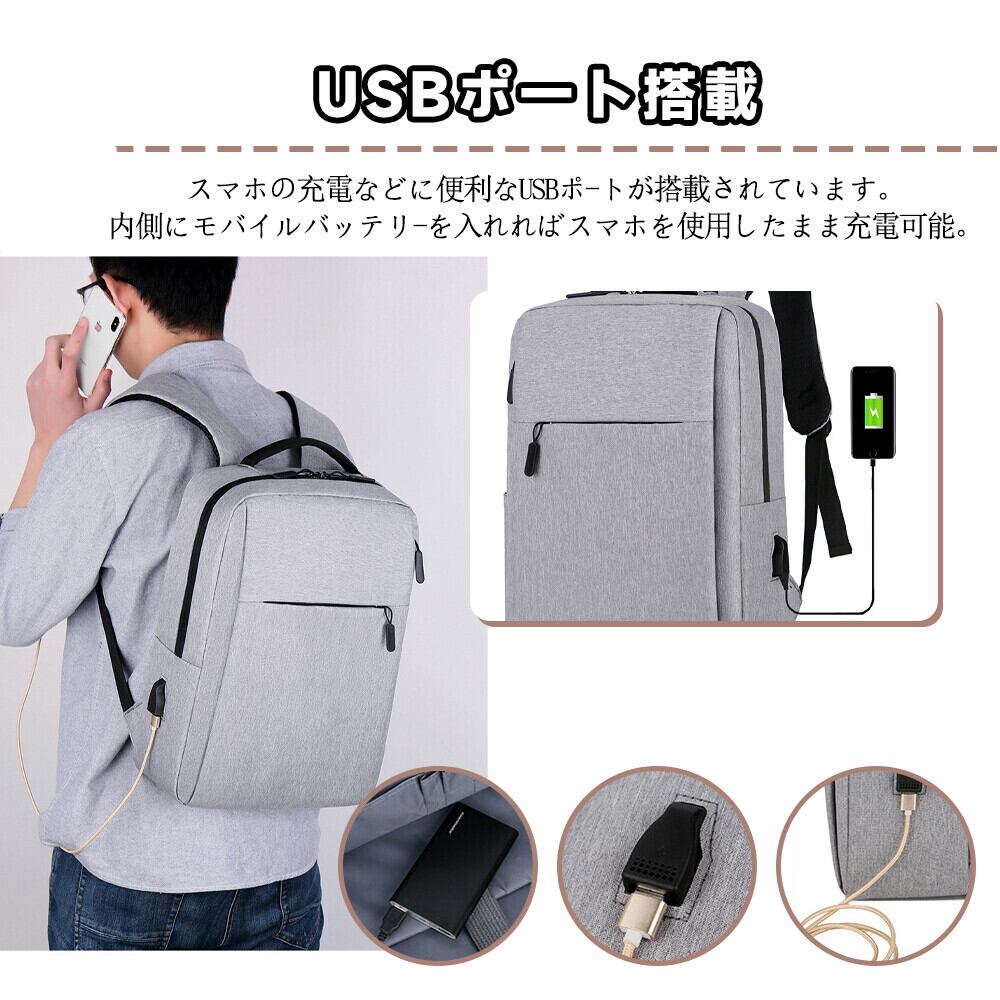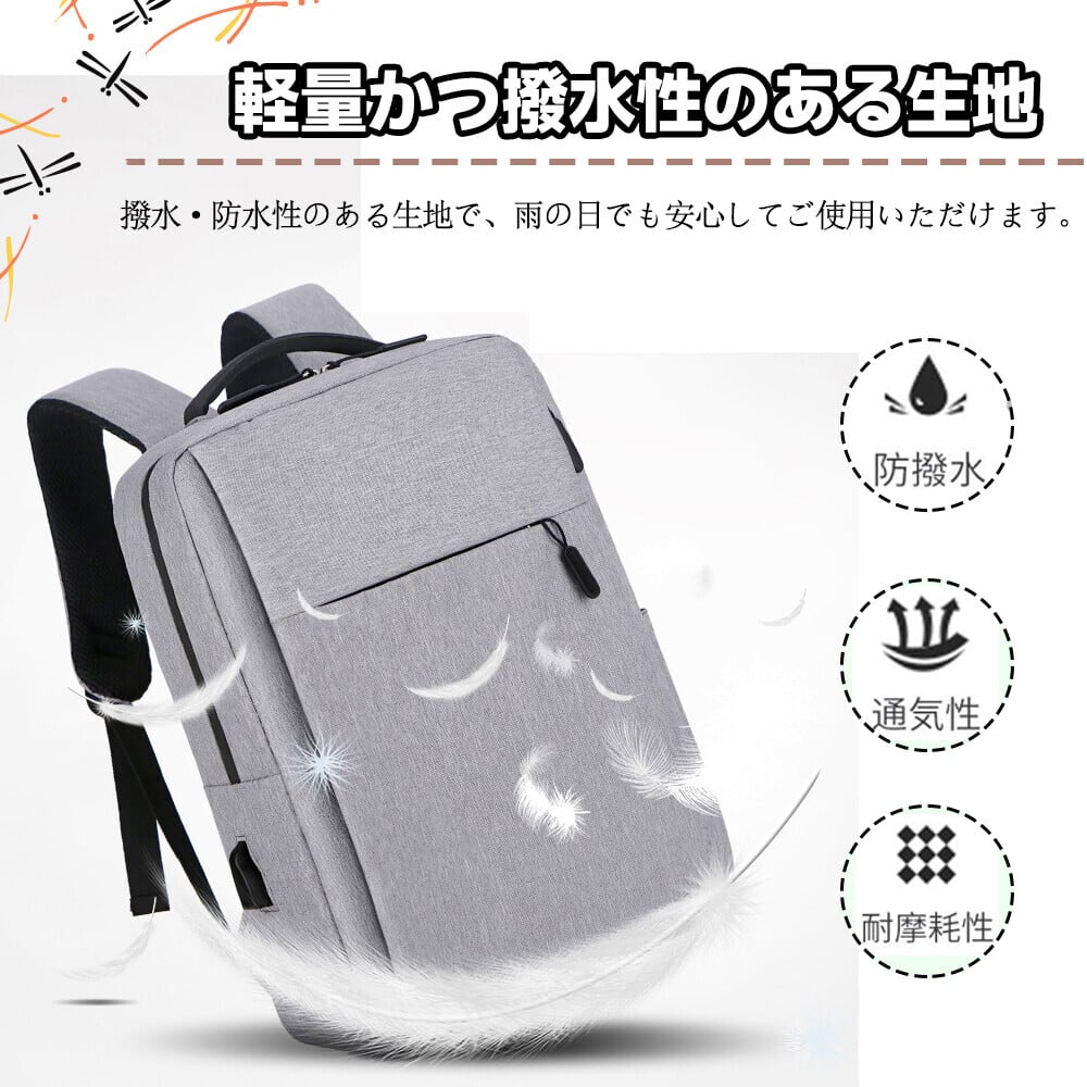 バックパック ビジネス リュック 軽量 USBポート 防水 撥水加工