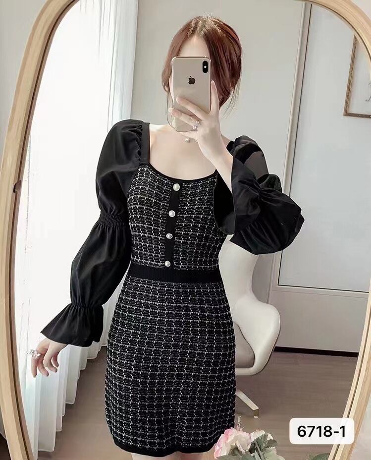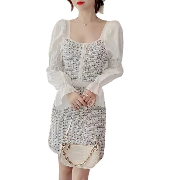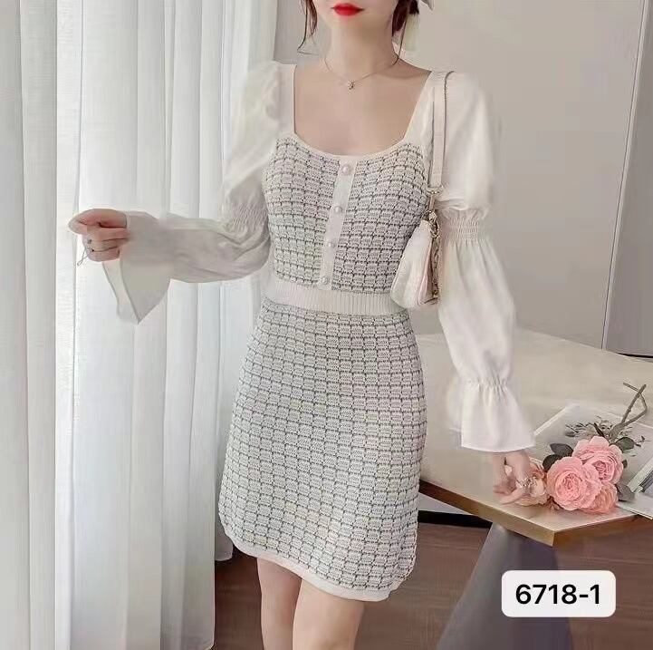☆長袖☆ニットパッチワーク☆ワンピース☆レディース服