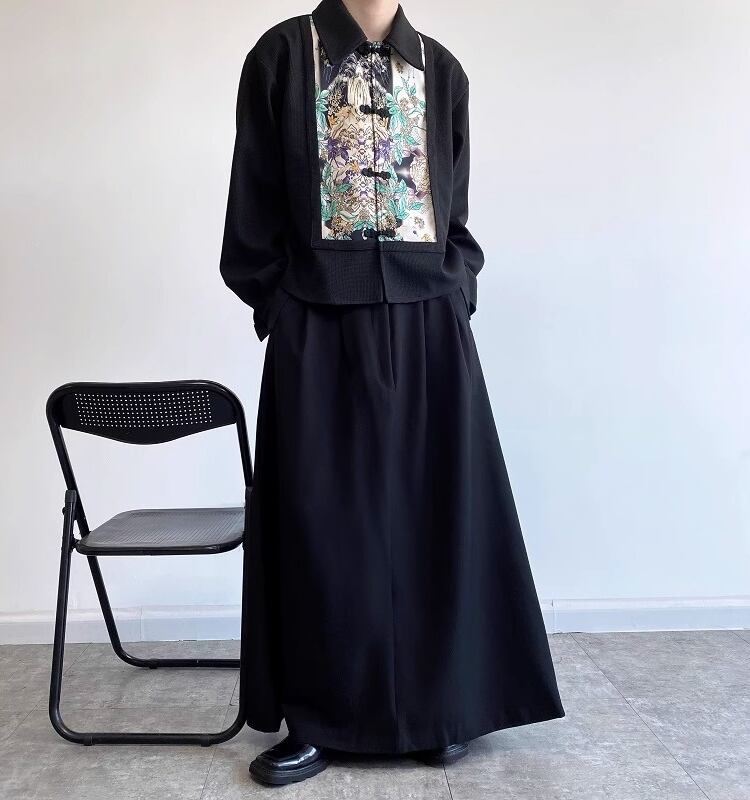中国風のデザインが特徴的なメンズチャイナシャツ。カジュアルな着こなしに華やかさをプラスしてくれる一枚です。伝統的な漢服の要素を取り入れつつも、モダンなシルエットで現代風にアレンジされています。
