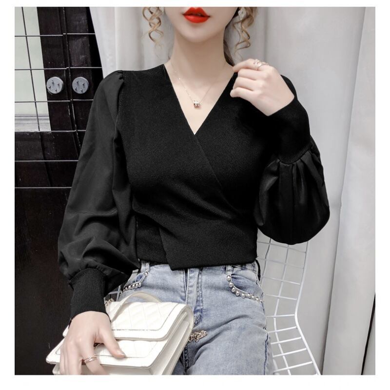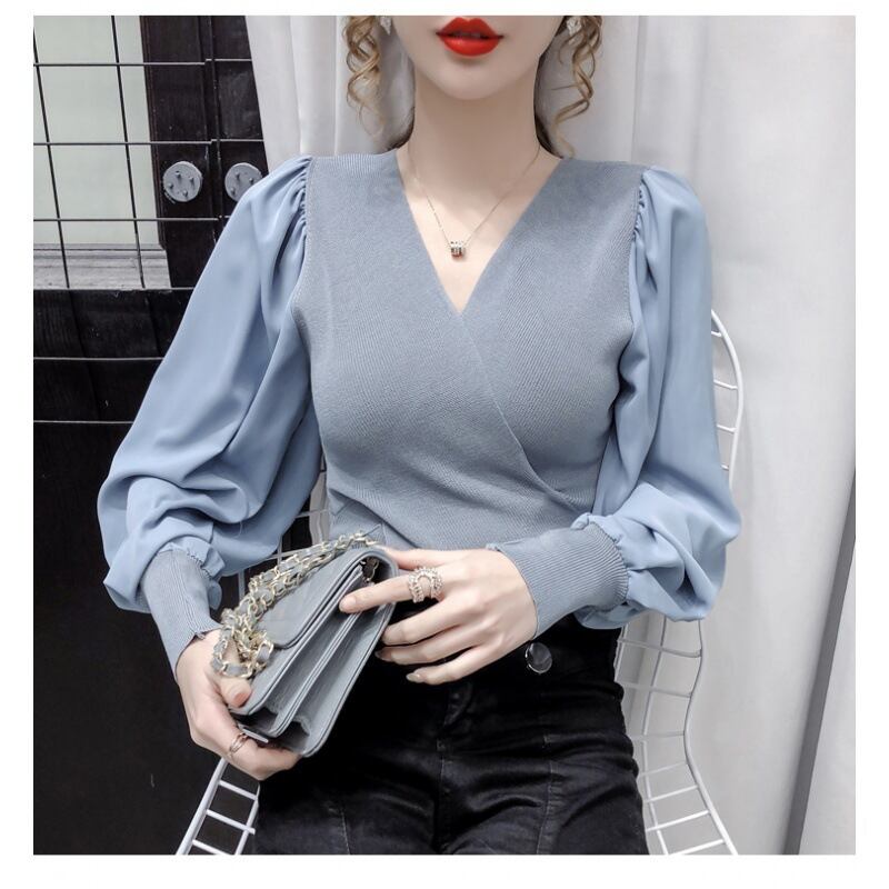 レディース服★♪ニット★♪vネックシフォン★♪長袖 ★♪トップス★♪