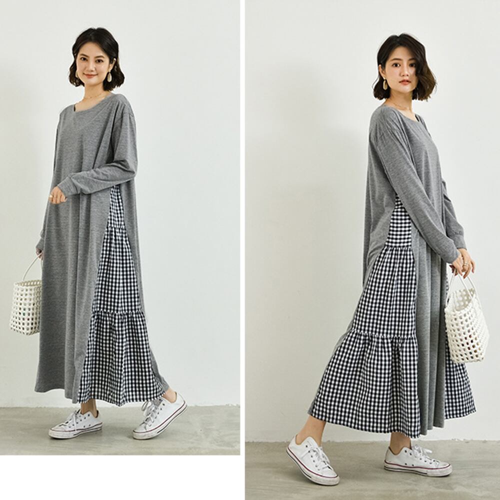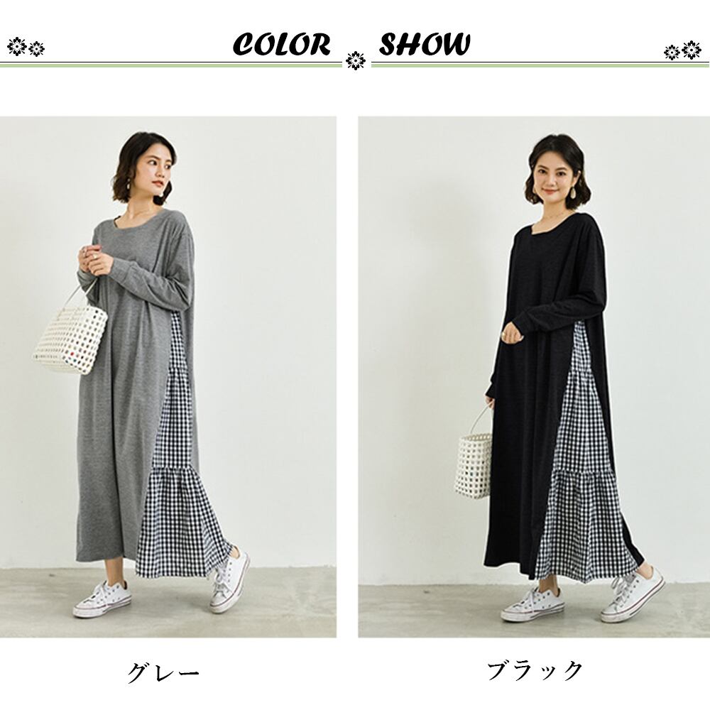 韓国 ドッキングワンピース 長袖 春夏秋