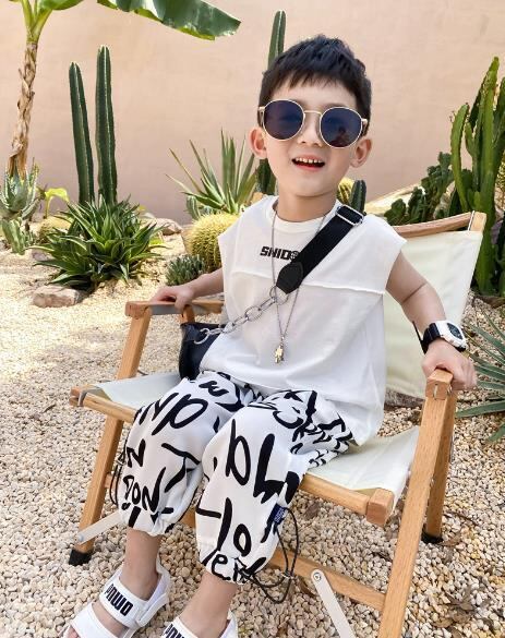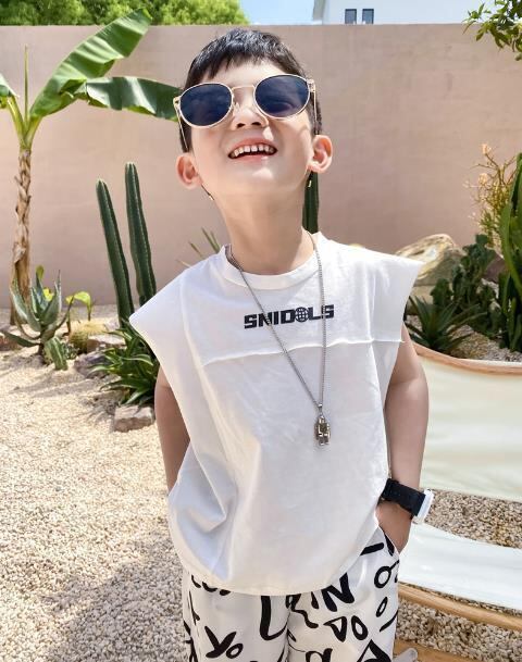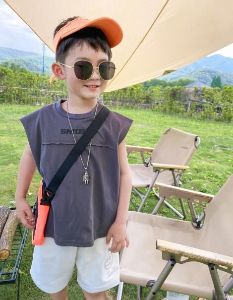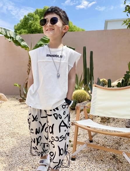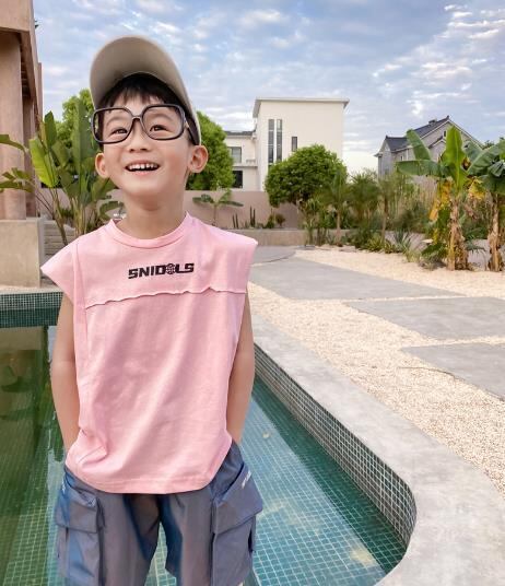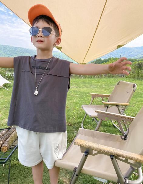 涼しい夏に最適な袖なしTシャツ。男の子向けのカジュアルデザイン。