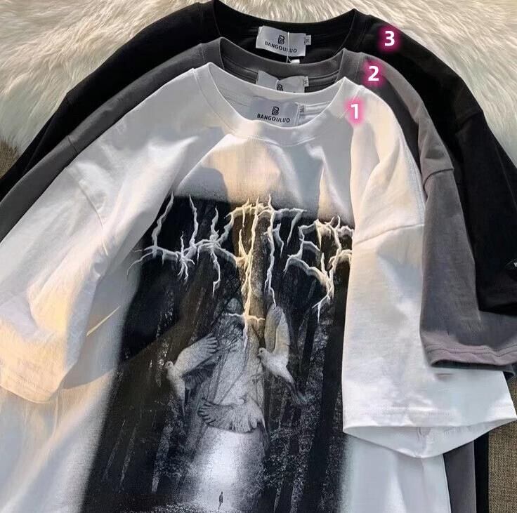 メンズ カジュアル 半袖 丸首 プリントTシャツ インナー