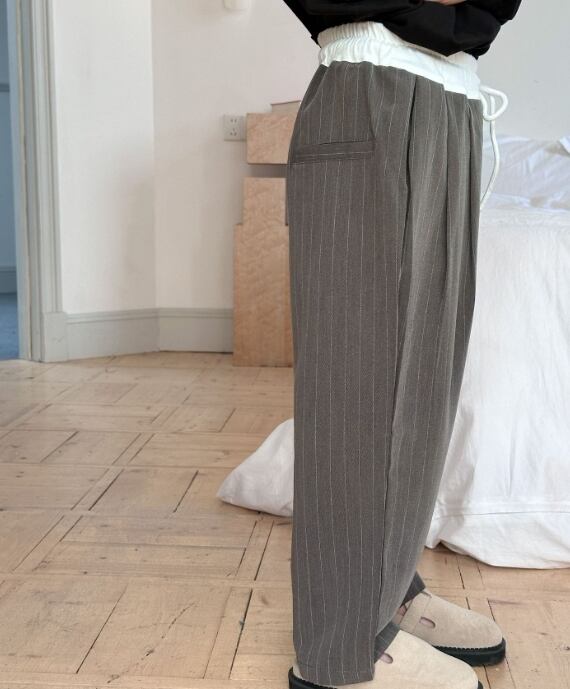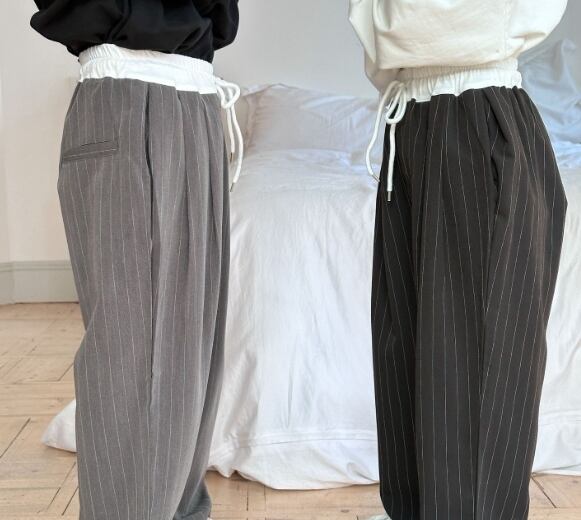 スラックス パンツは男女兼用で幅広いサイズ展開。上品な印象を与えてくれる一枚。シンプルなデザインでどんなトップスとも相性抜群。