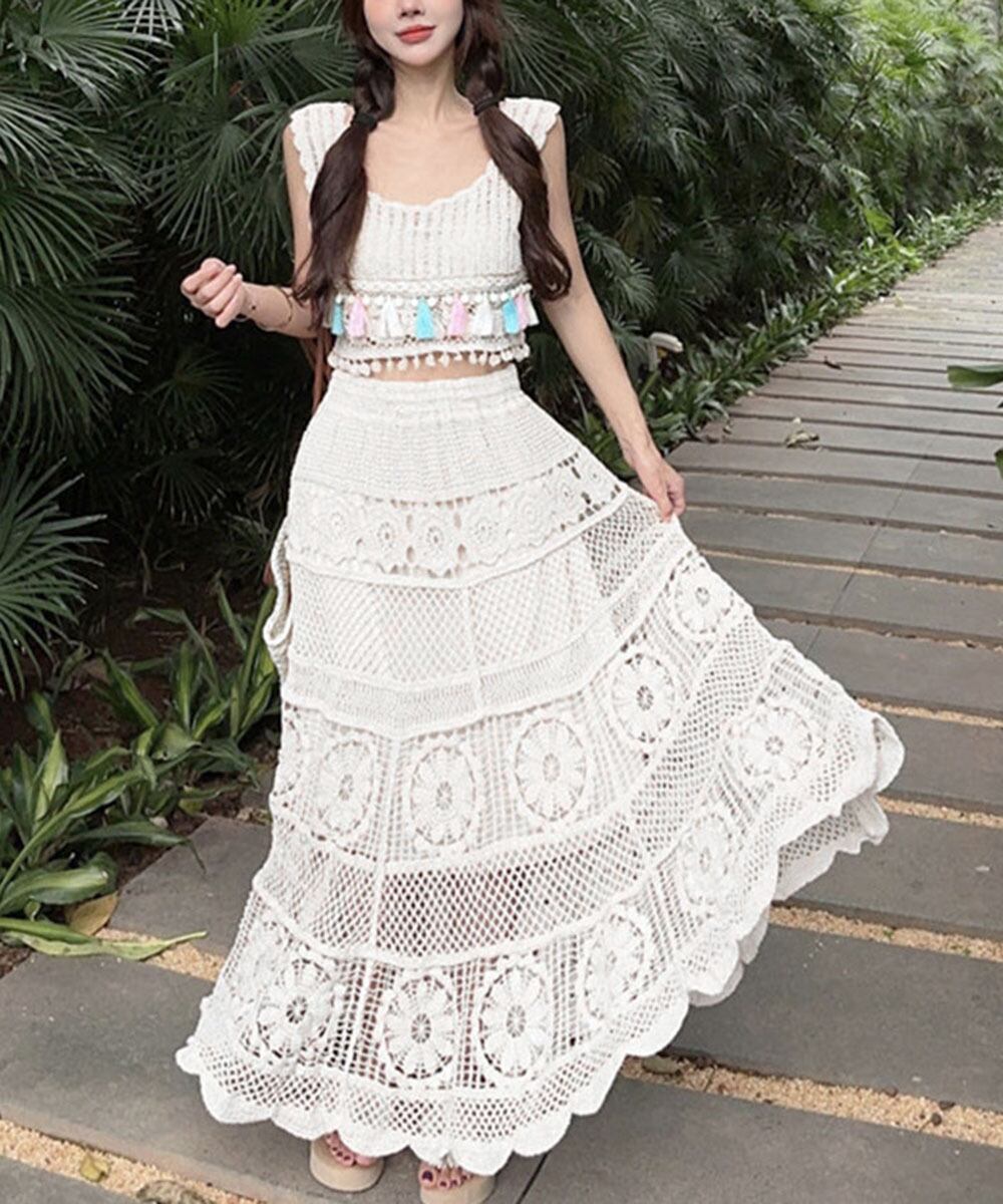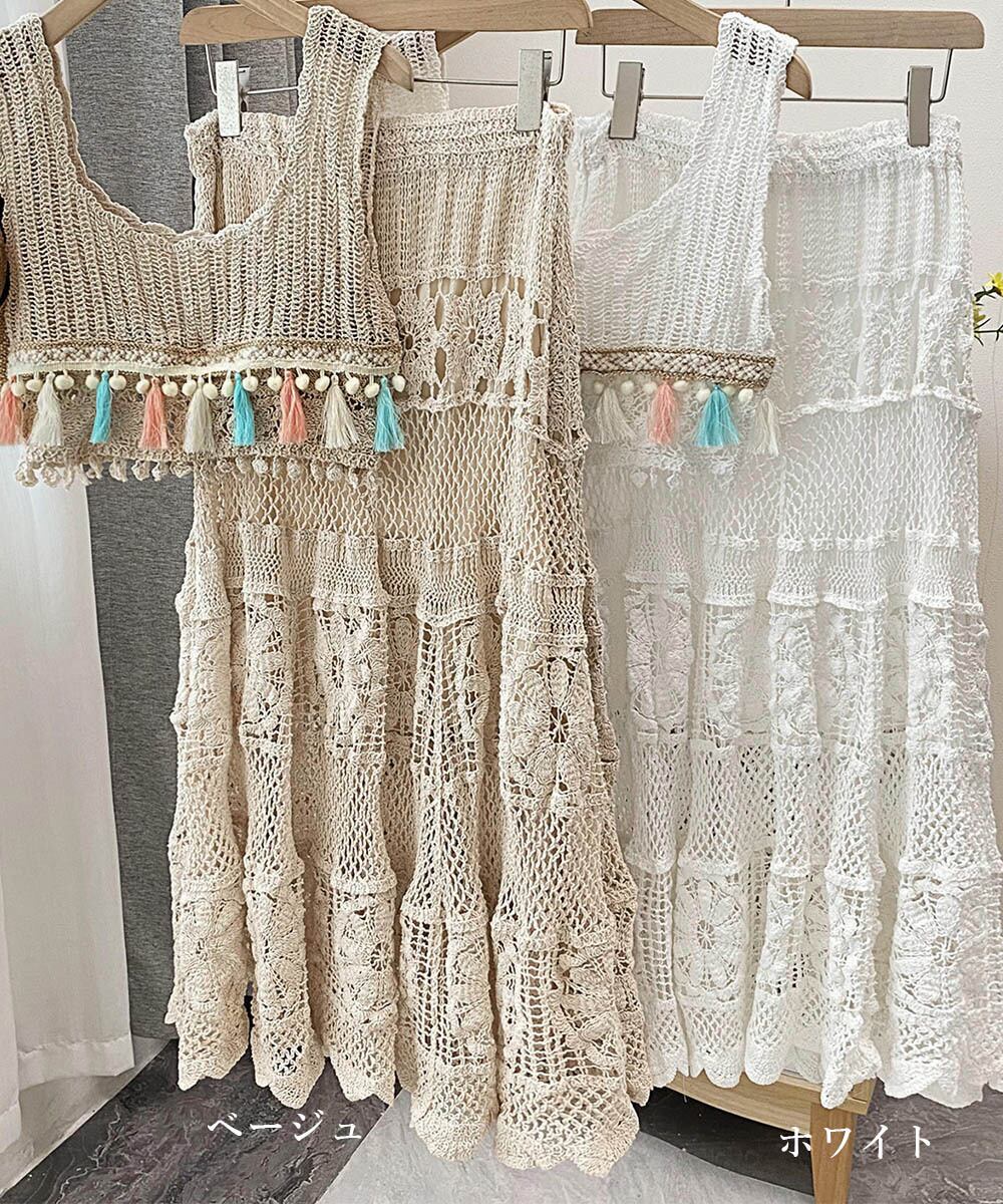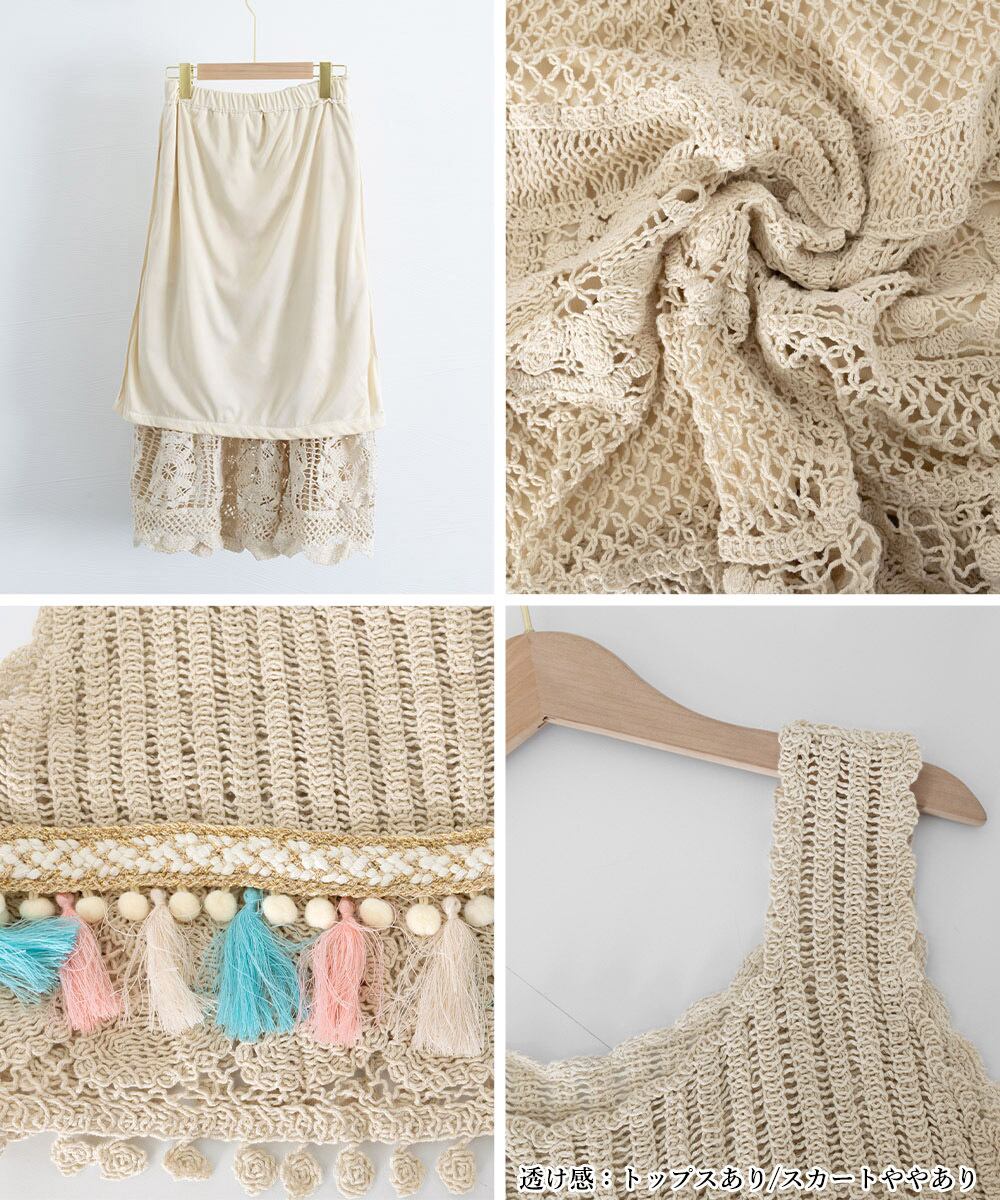 クロシェ編みセットアップ ボヘミアン夏服