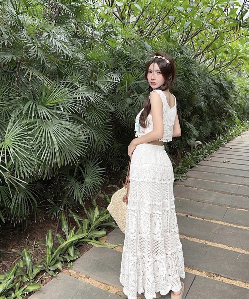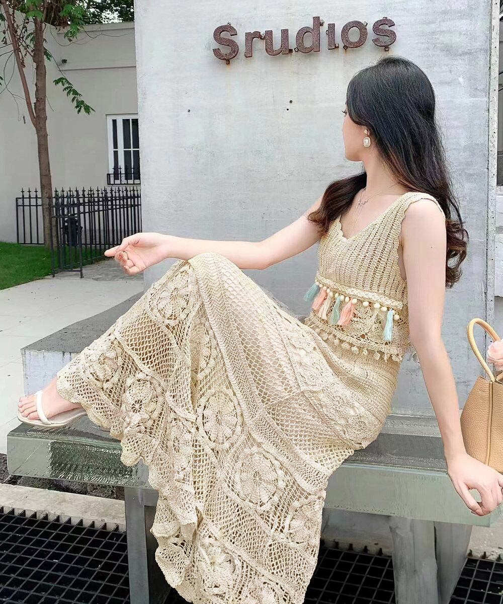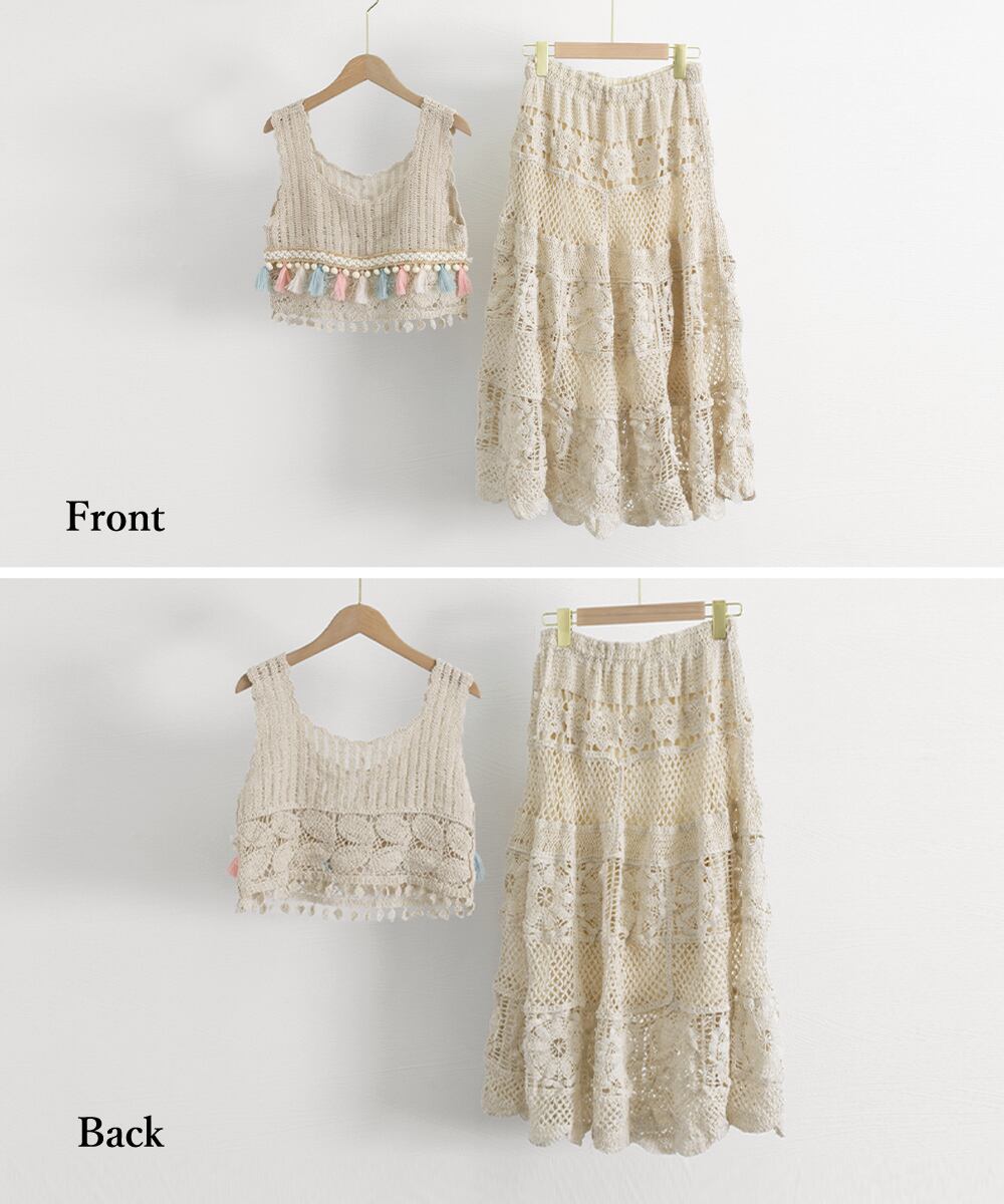 クロシェ編みセットアップ ボヘミアン夏服