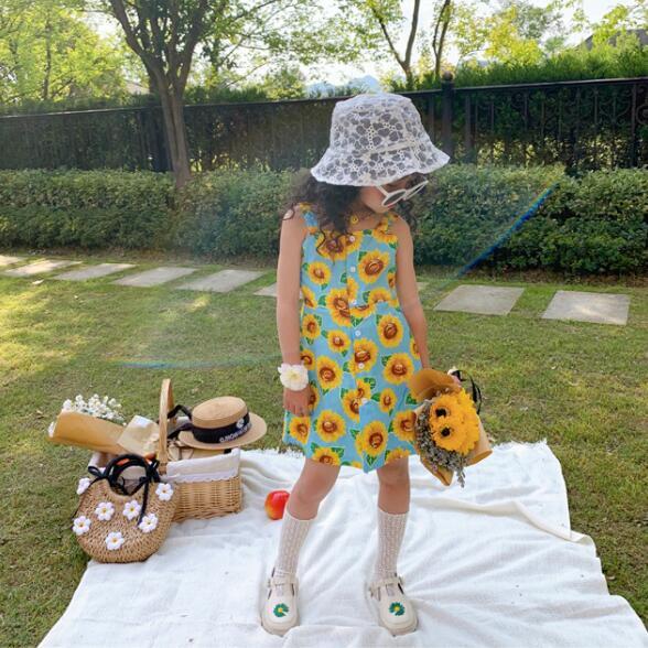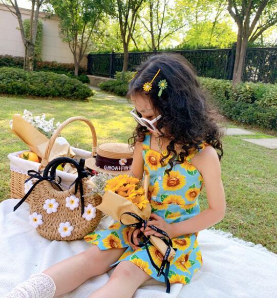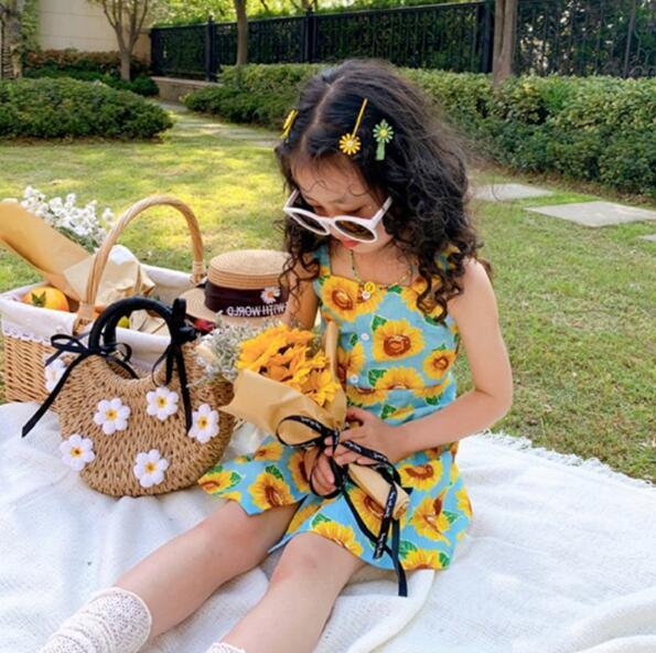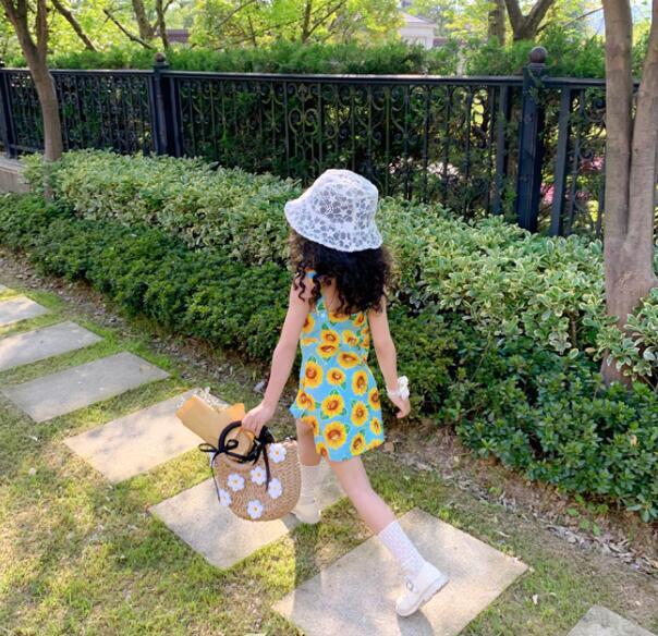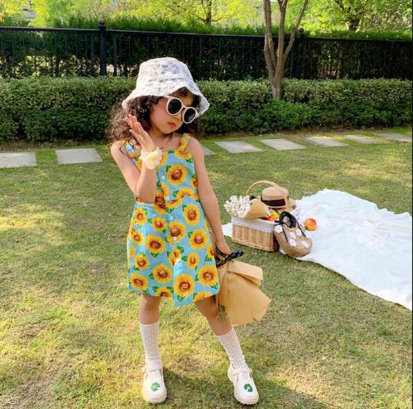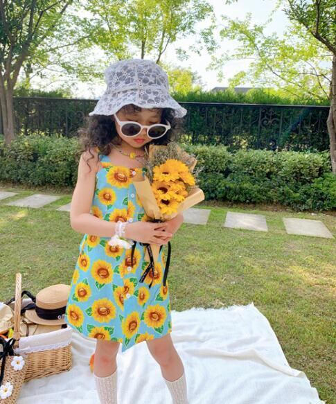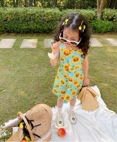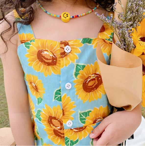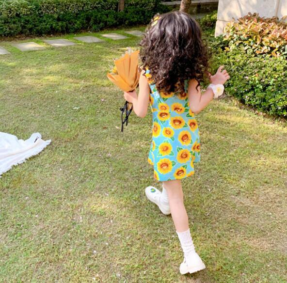 韓子供服 韓国ファッション キャミ ひまわり サンフラワー 花柄ワンピース 女の子
