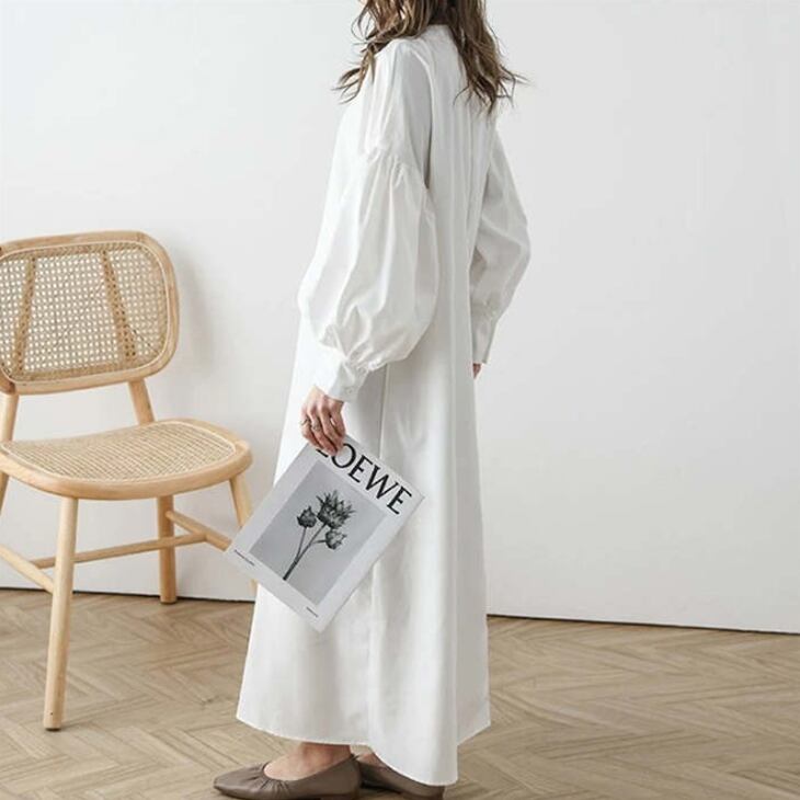 シャツワンピースの製作は、職人が1着1着手作りしているため、品質にこだわった仕上がりになっています。洗練されたディテールや高い技術力が詰まった逸品です。
