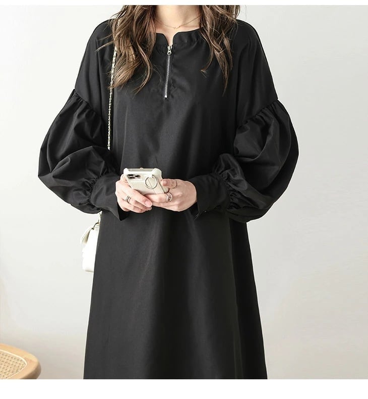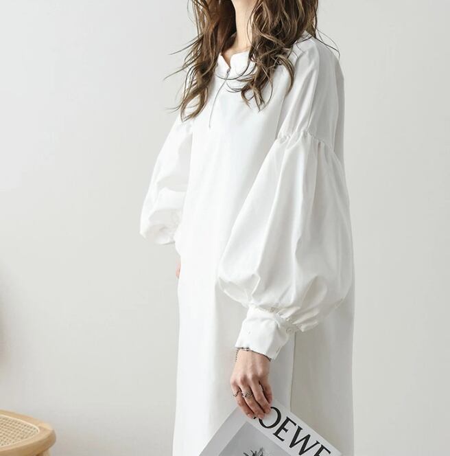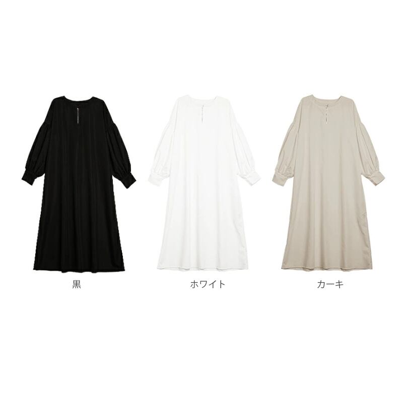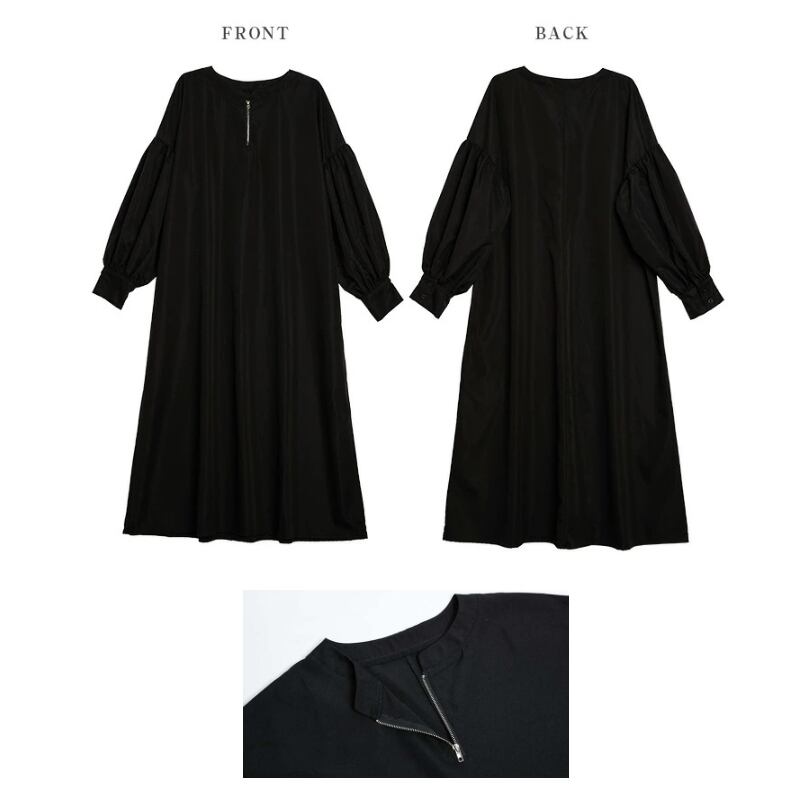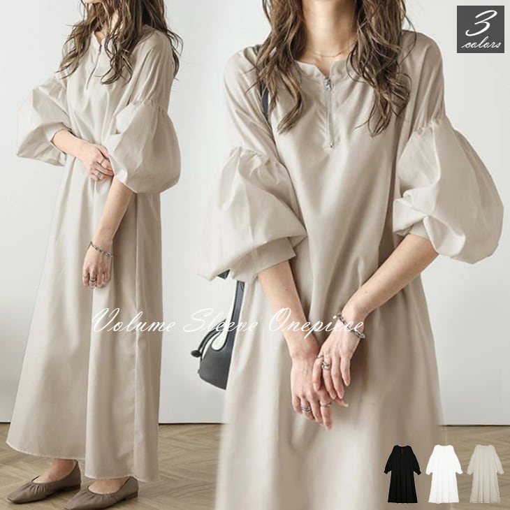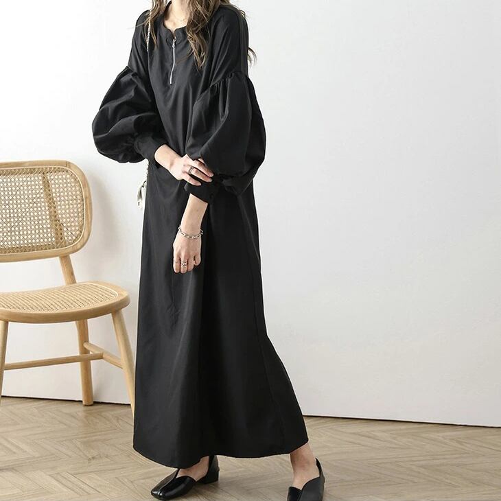 レディース シャツワンピース きれいめ ぽわん袖 ボリューム袖 コンシャス ハーフジップ