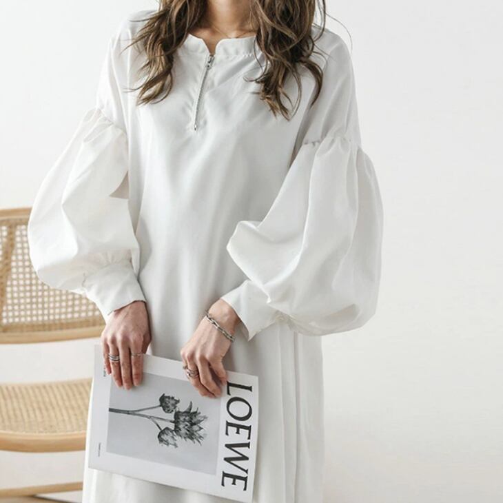 きれいめで女性らしいシルエットが魅力のシャツワンピース。華やかなぽわん袖やボリューム袖が、コーディネートに新しいアクセントをプラスしてくれます。ハーフジップがアクティブな印象を与え、着るだけでおしゃれ度が格段にアップします。