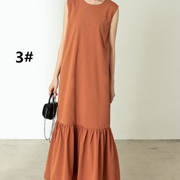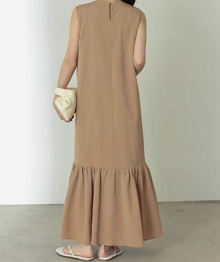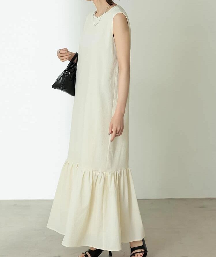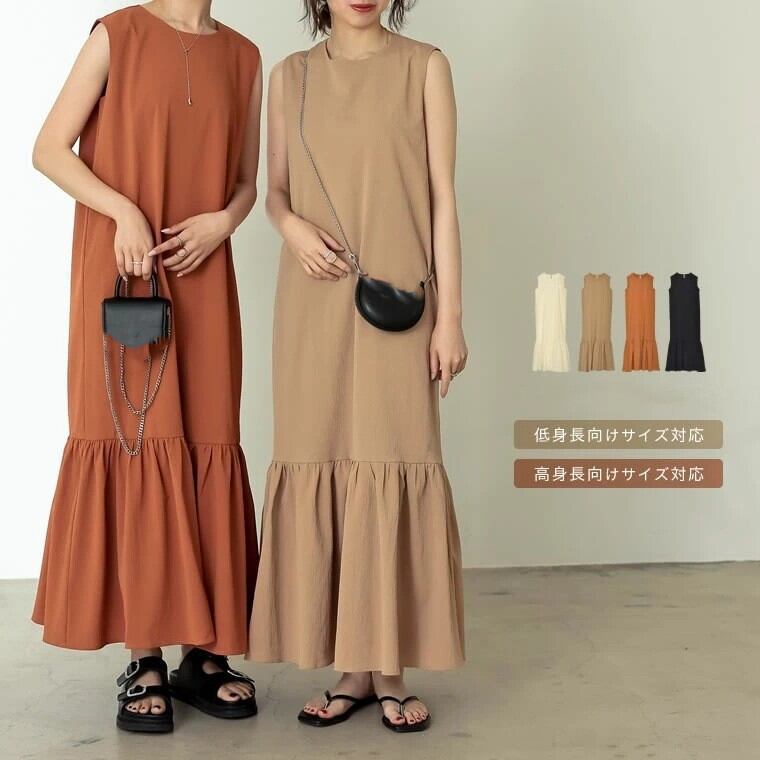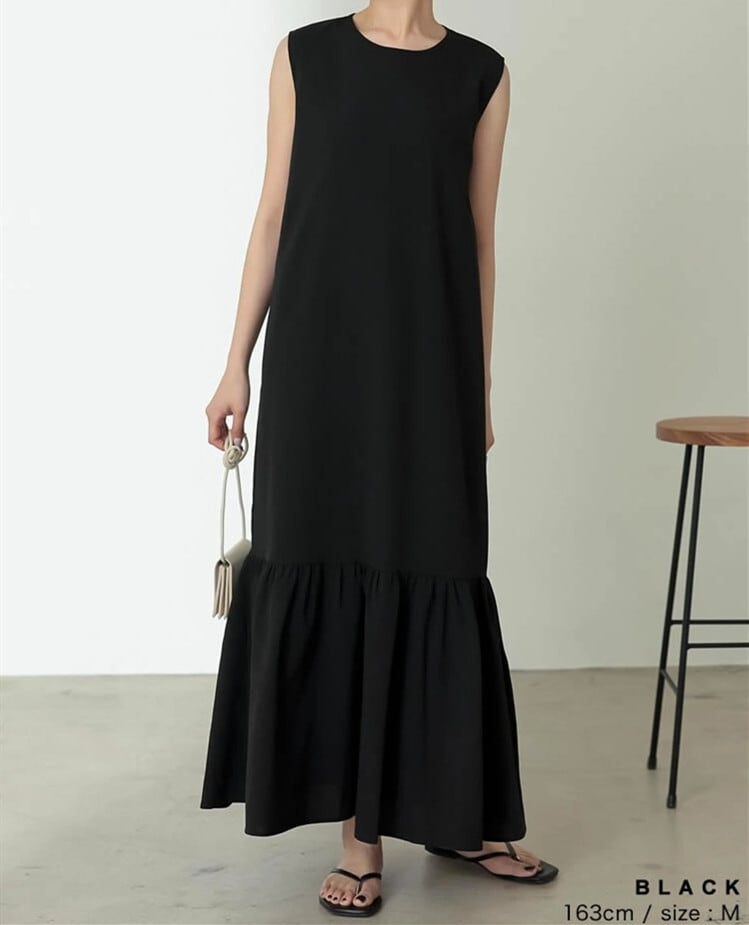 ロング丈ワンピース ラウンドネック ノースリーブ レディース