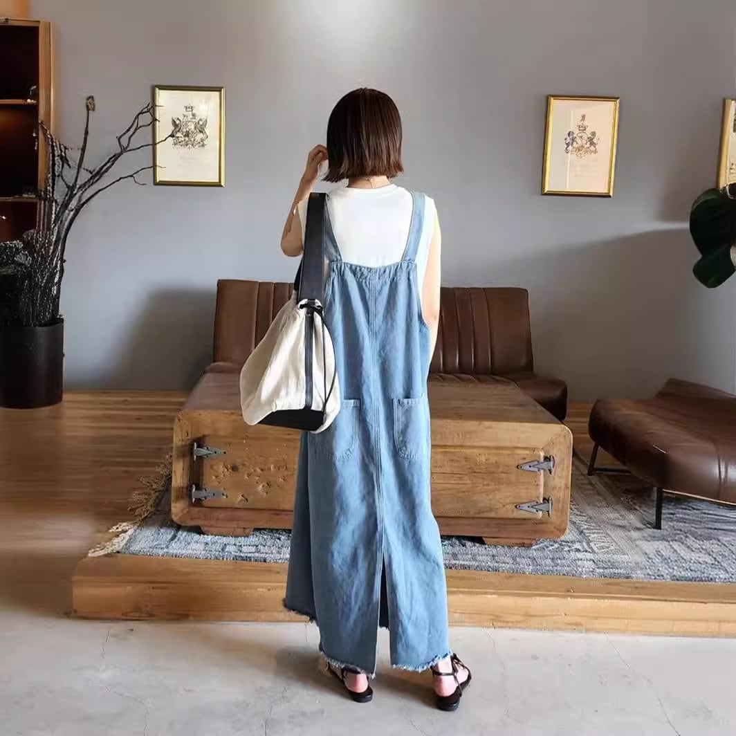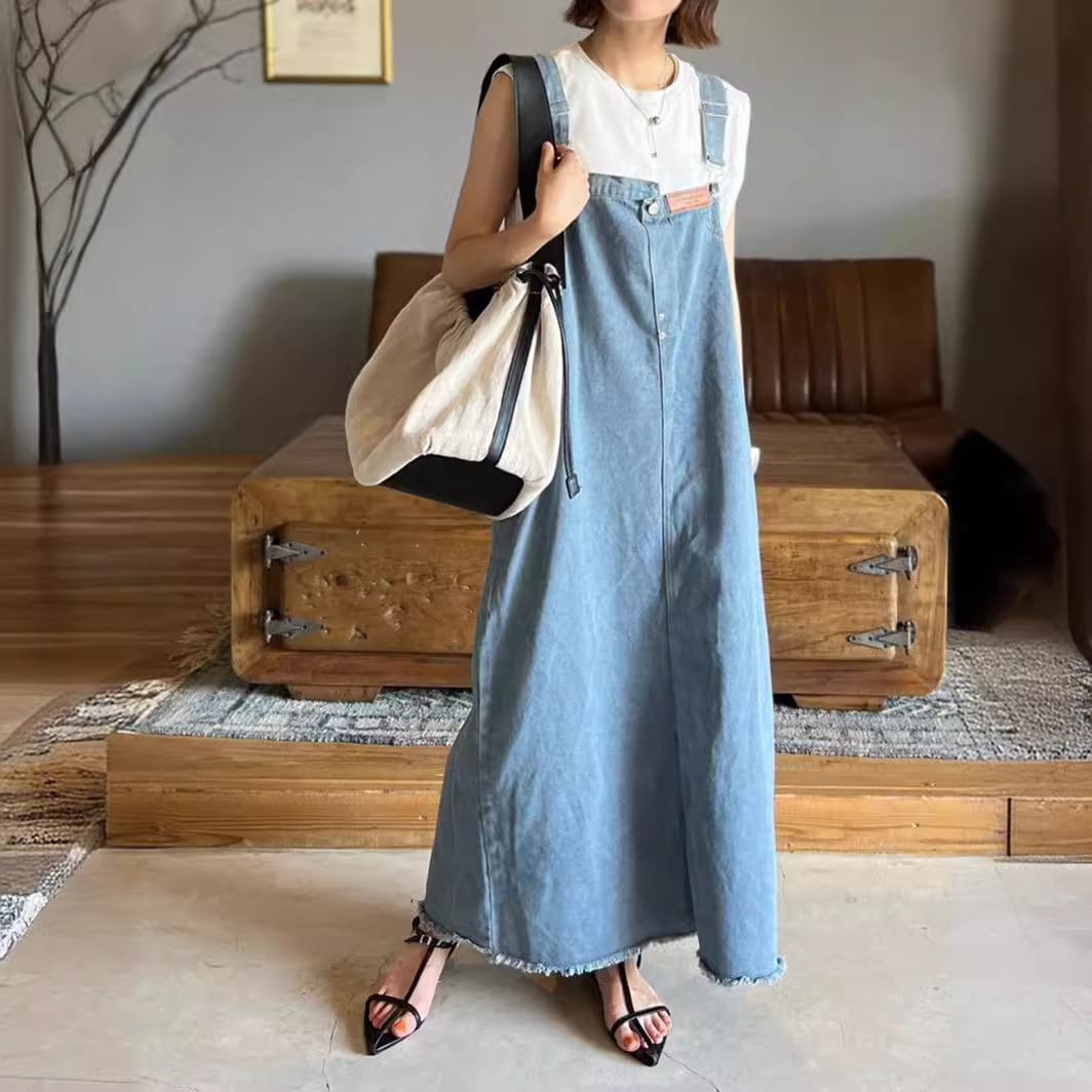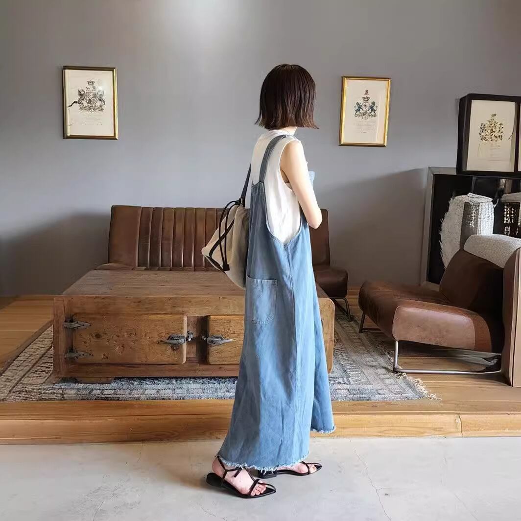 ロング丈ワンピース デニムワンピース キャミワンピ ノースリーブ レディース